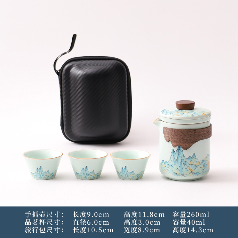 千里江山旅行茶具陶瓷快客杯户外便携功夫茶具伴手礼商务礼品logo