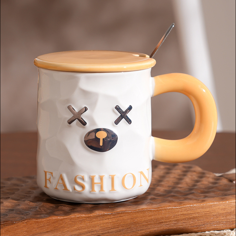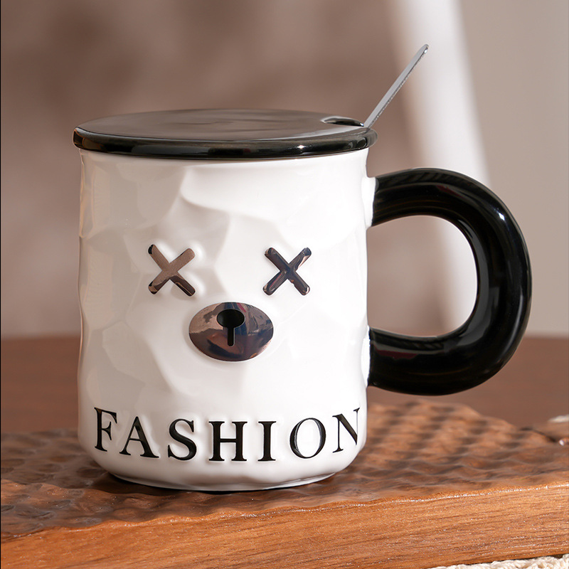 创意轻奢个性小熊马克杯陶瓷带盖勺喝水杯伴手礼咖啡杯高颜值杯子