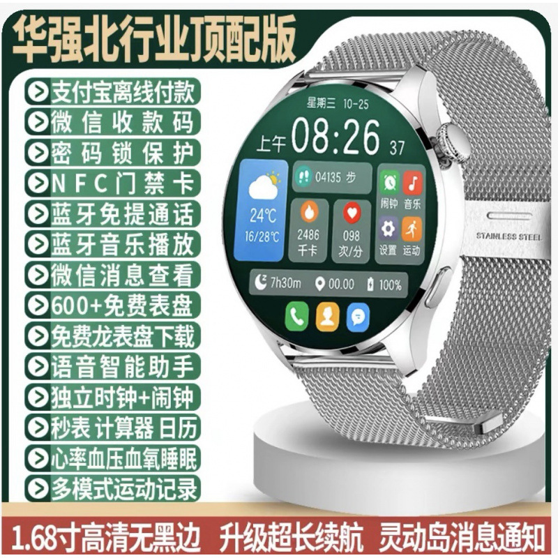 华强北watch5智能手表多功能蓝牙通话屏接打电话音乐支付运动手表