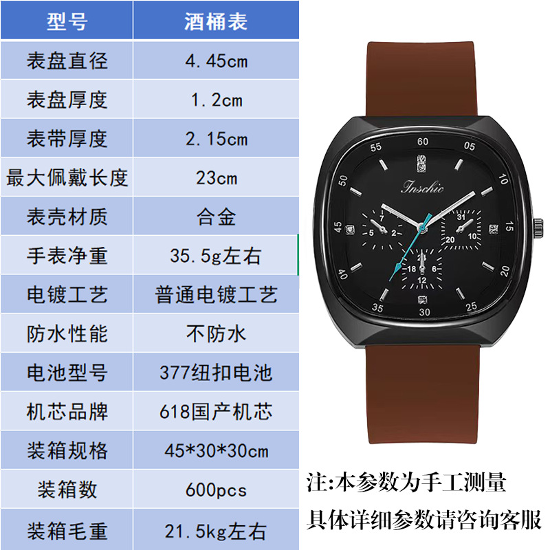2026年东南亚跨境电商爆款男士手表高级感酒桶硅胶带手表男石英表