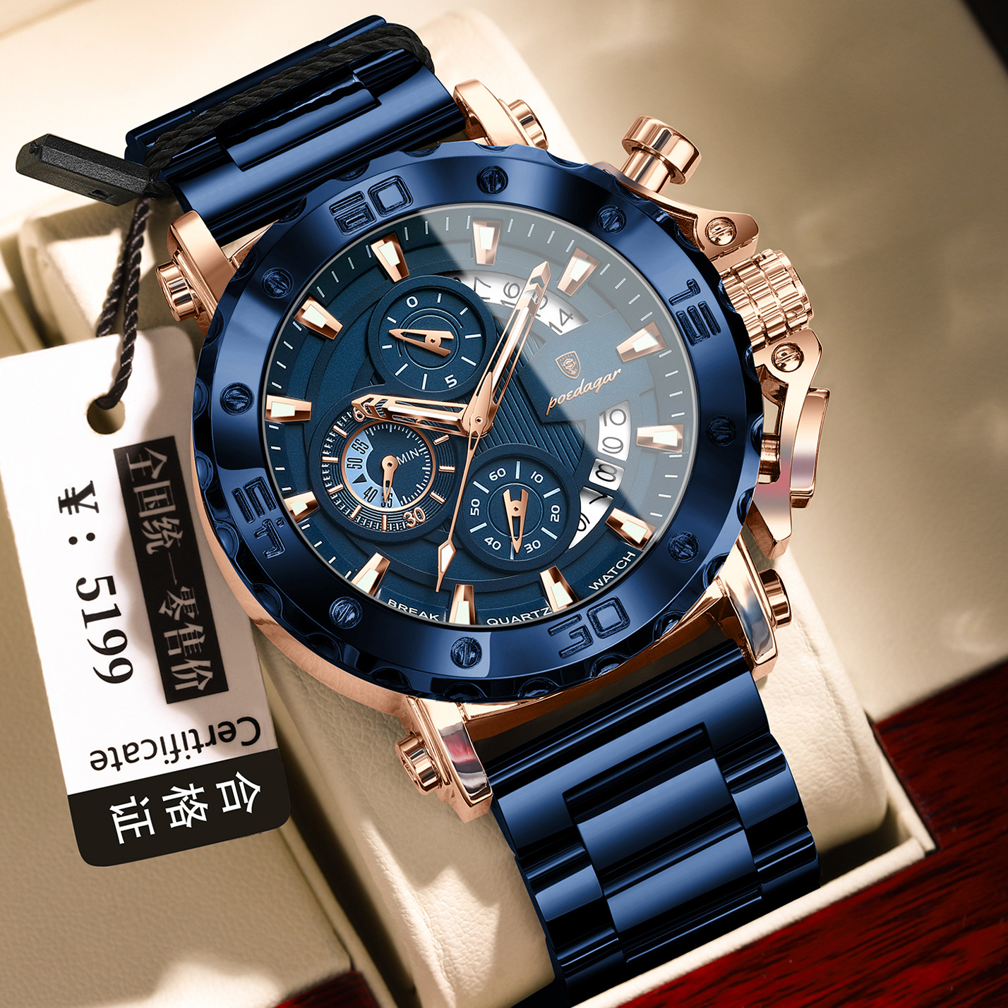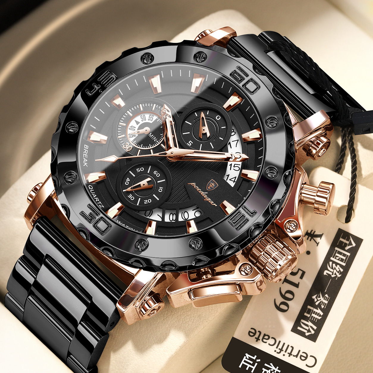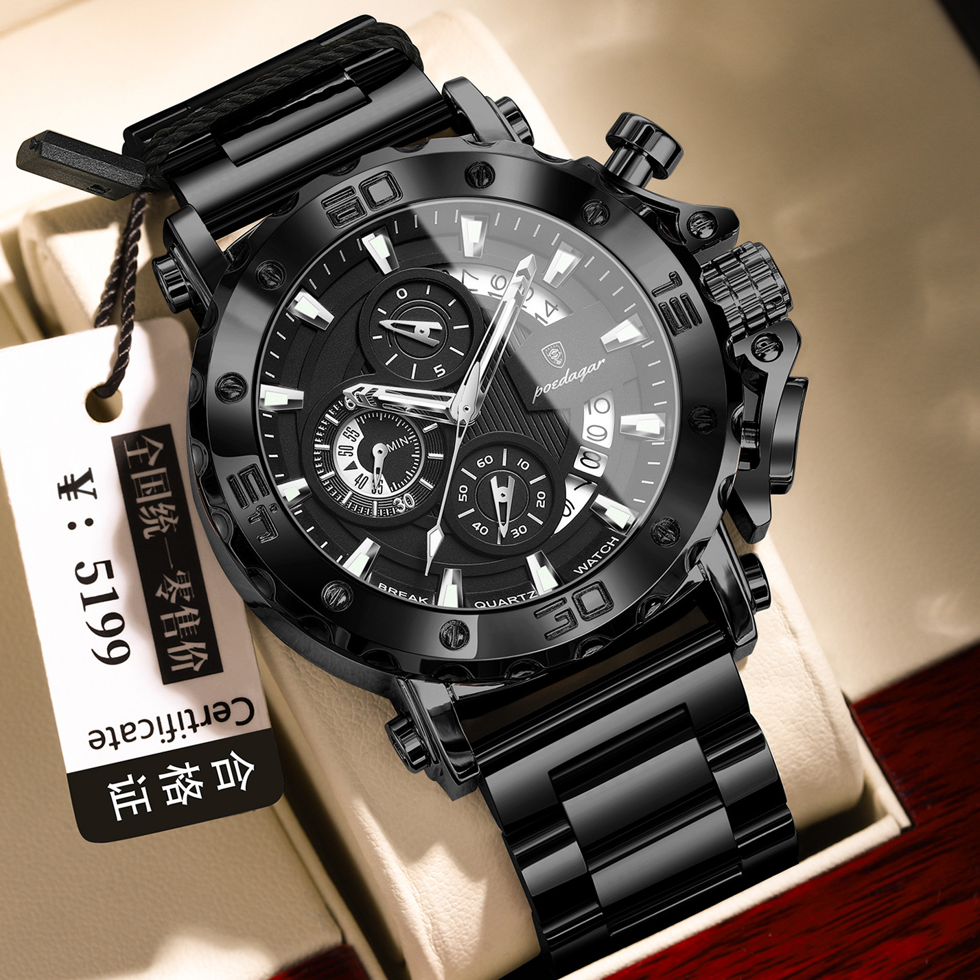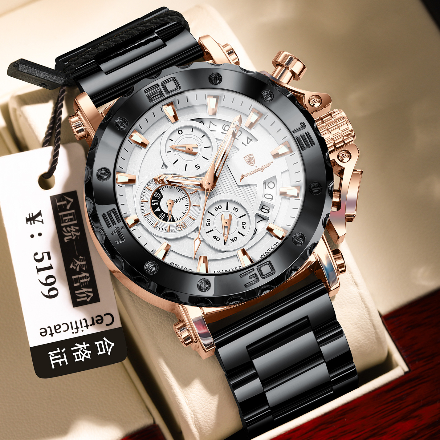 瑞士品牌石英表男士手表六针多功能休闲腕表直播外贸爆款一件代发