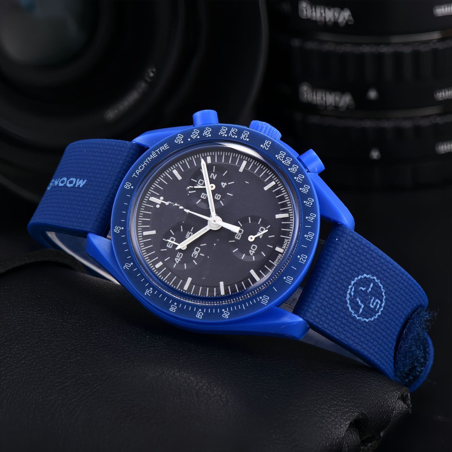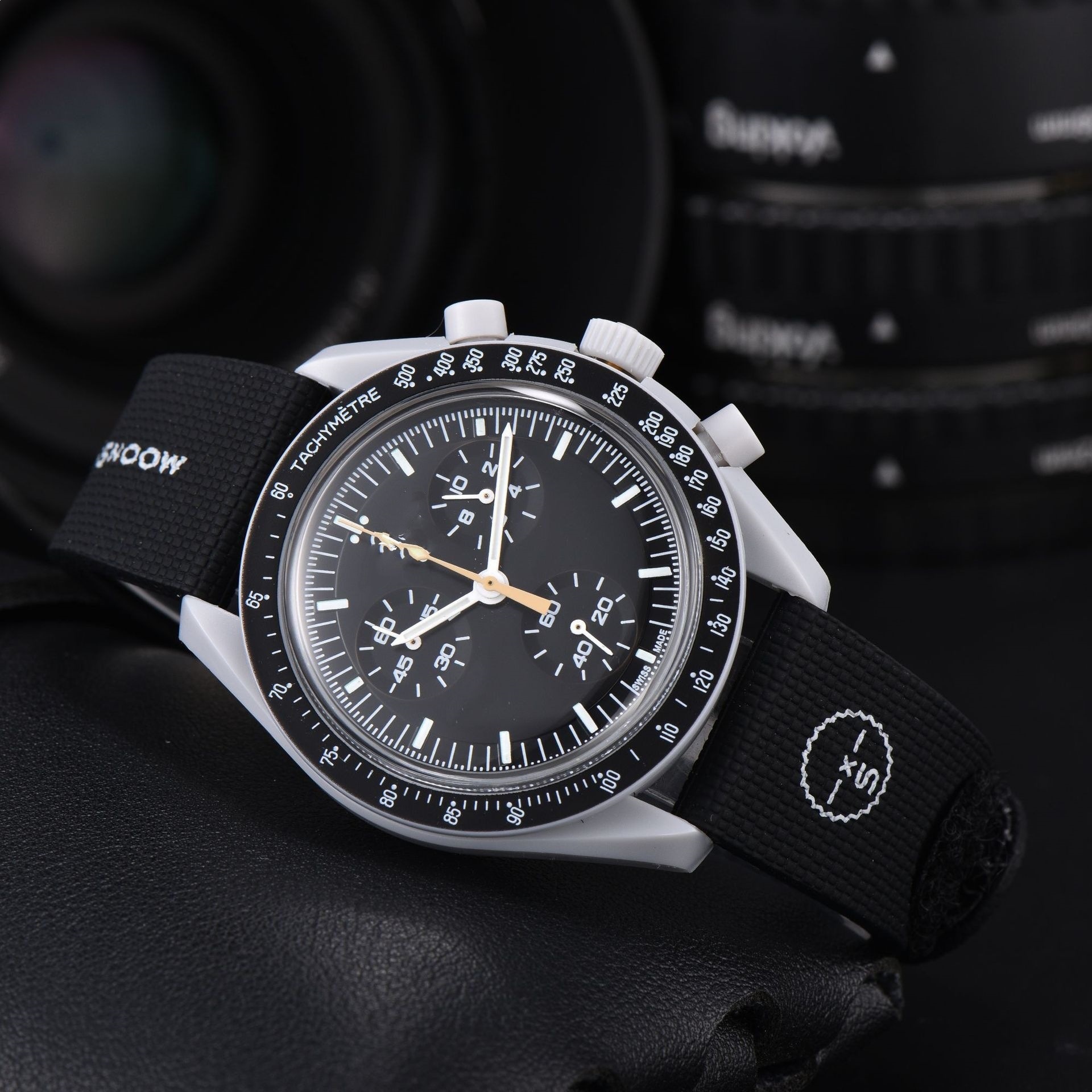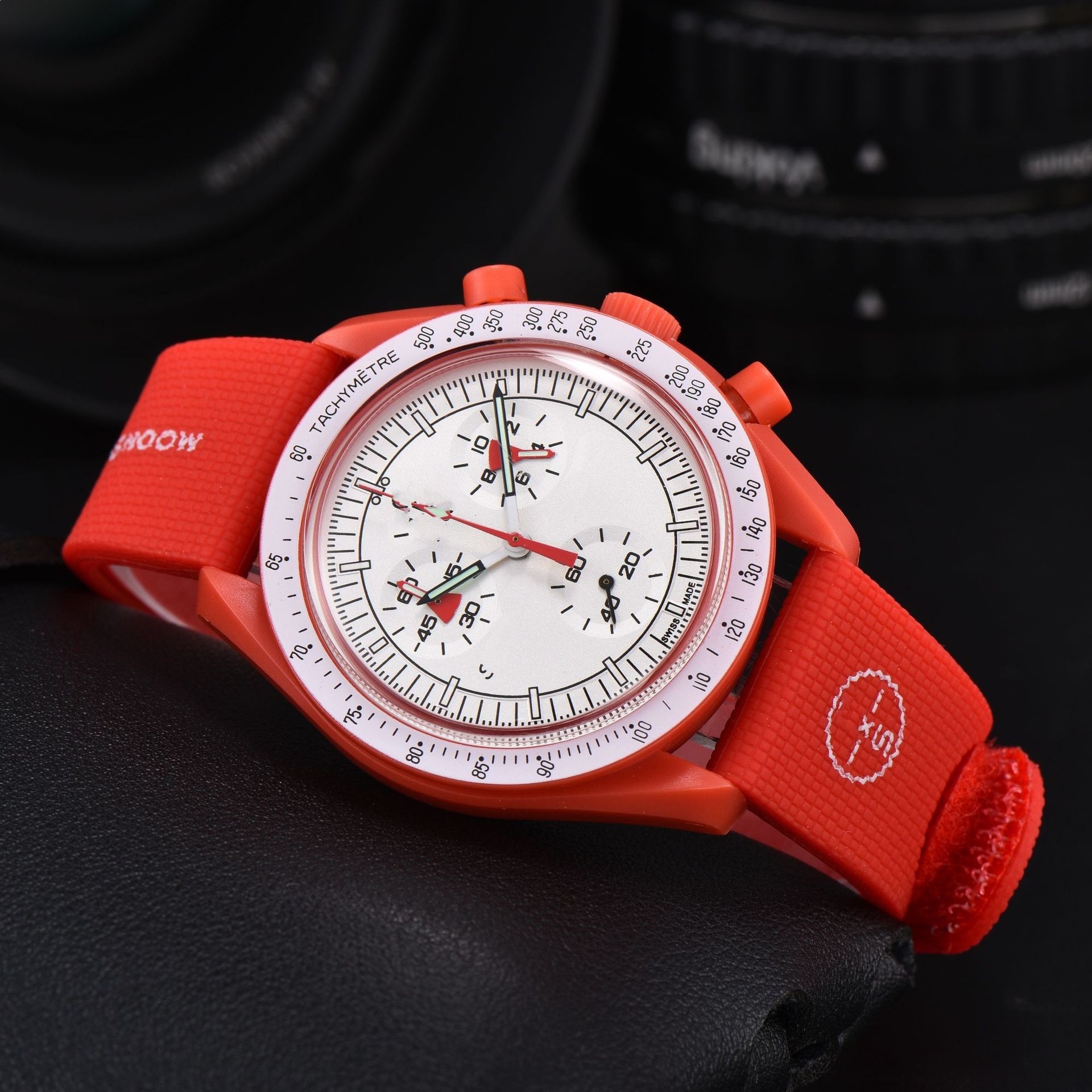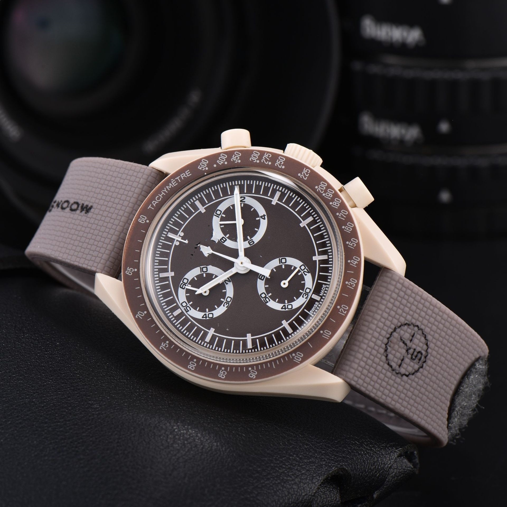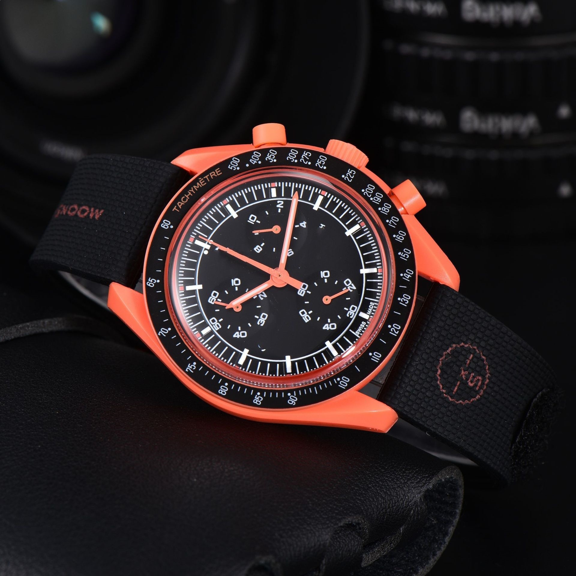 2026新款外贸敦煌爆款男士塑胶壳手表石英6针全功能计时橡胶手表