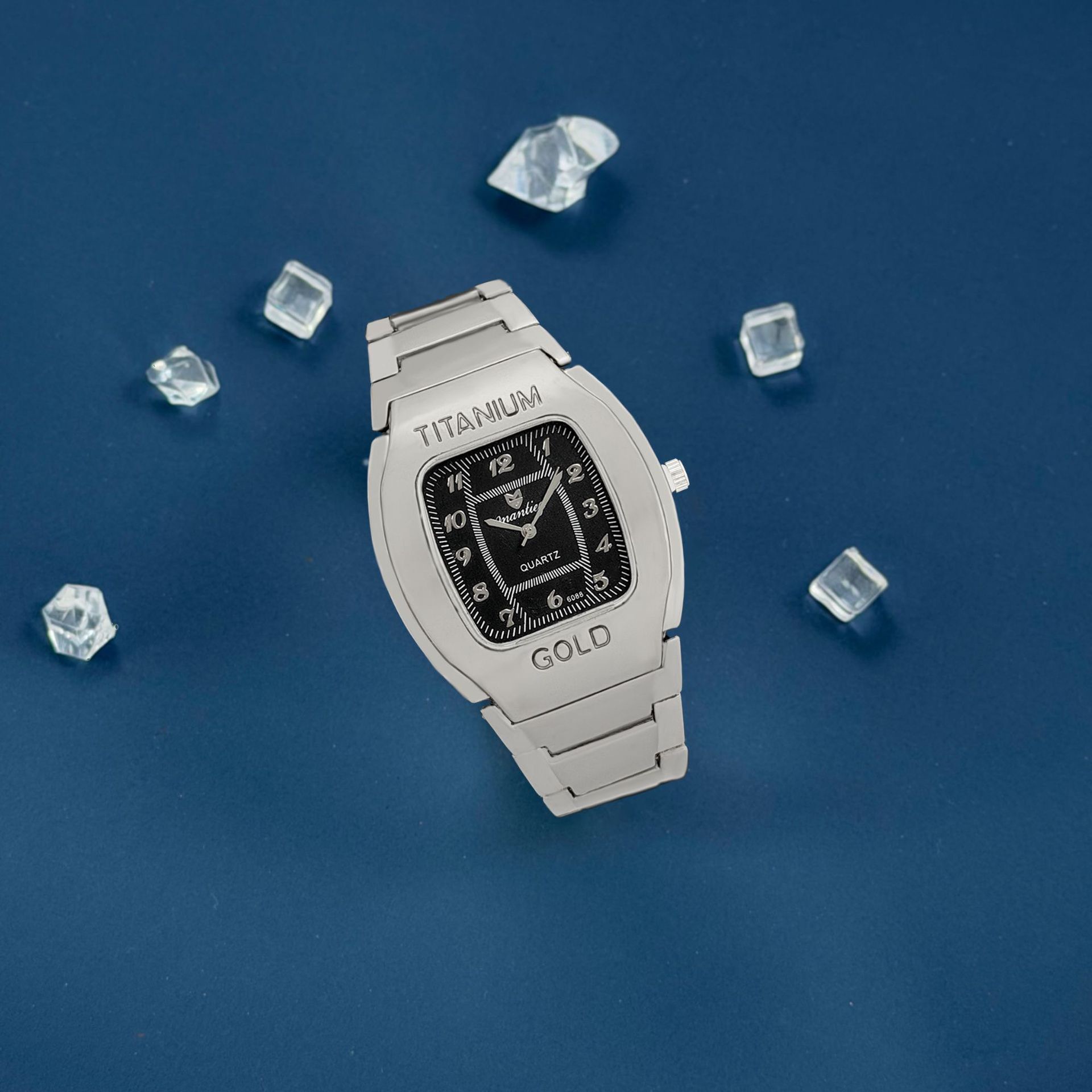酒桶形男士手表商务休闲石英表银色小方块数字指针表礼物腕表批发