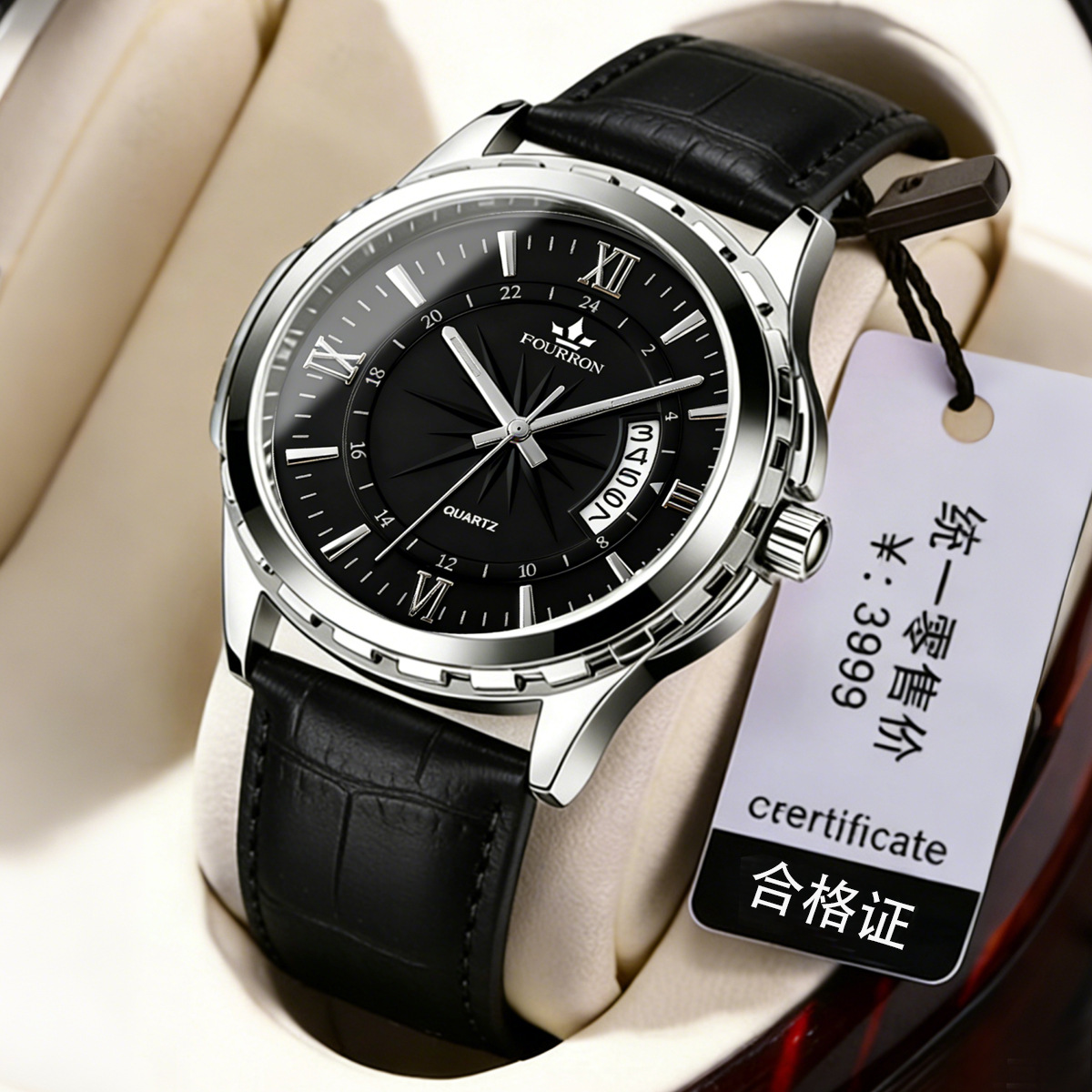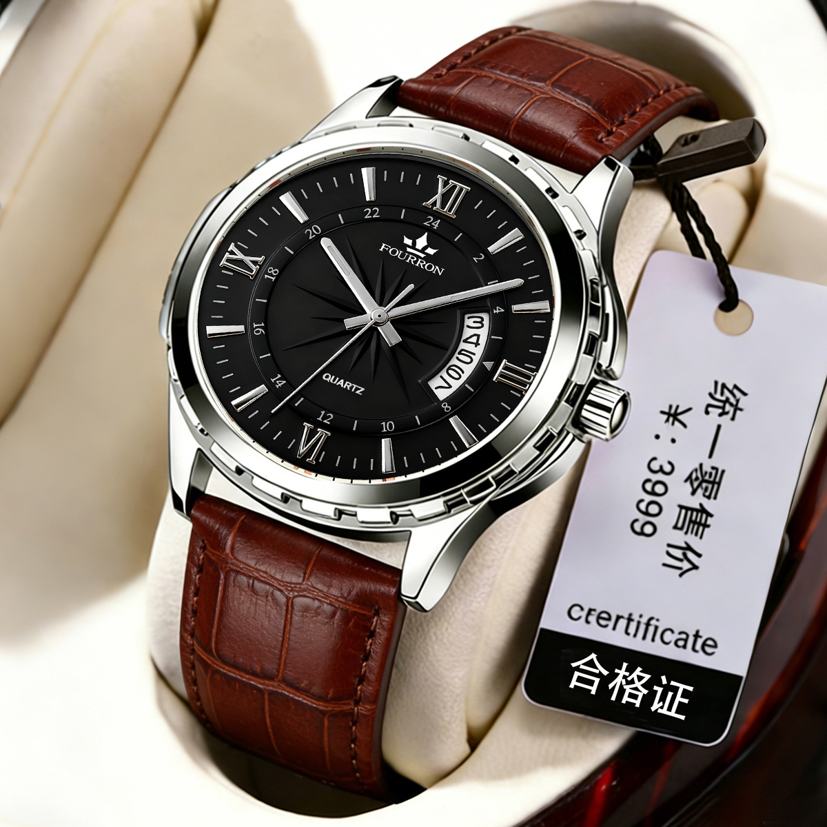 时尚经典男士日历手表皮带商务精美防水手表石英表现货代发男士