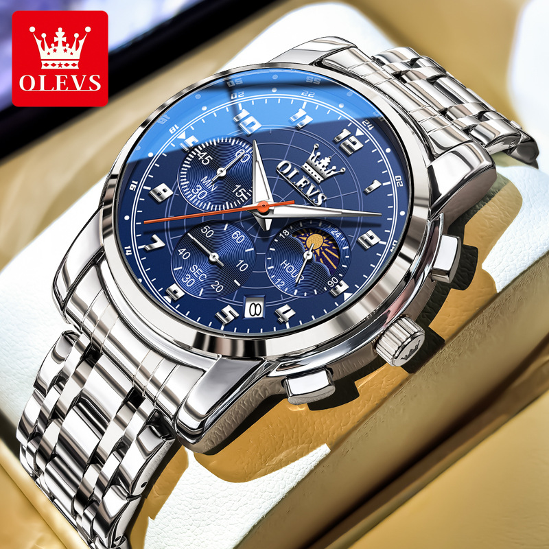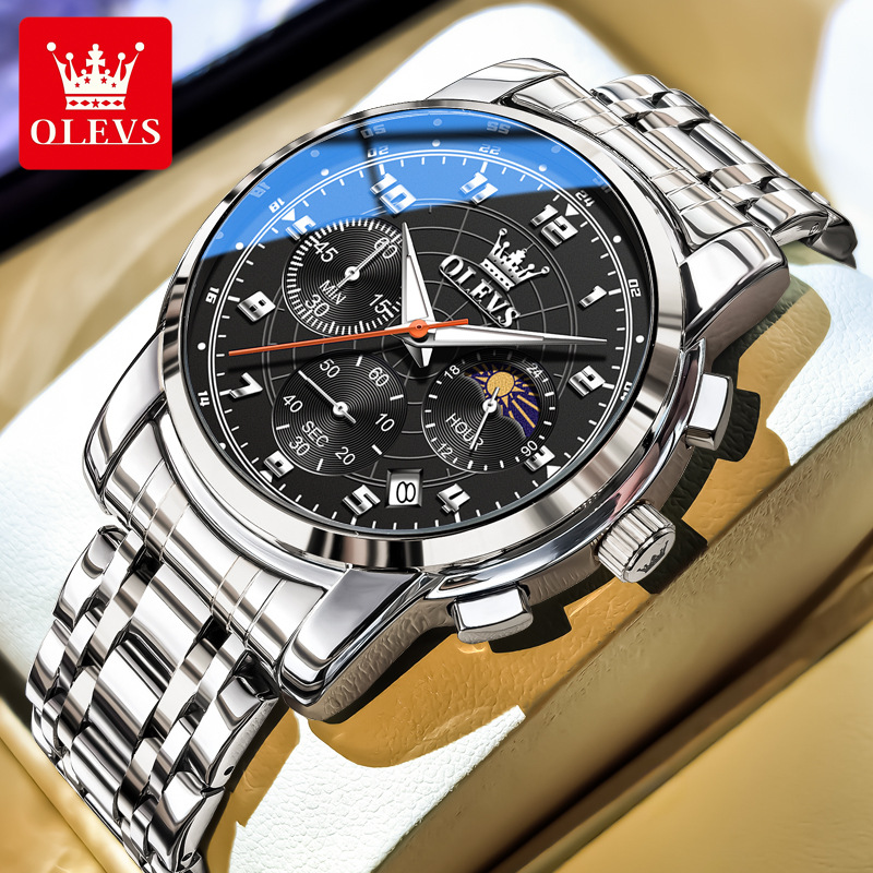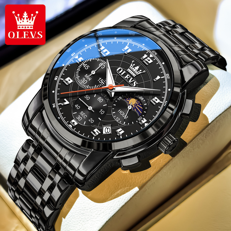欧利时olevs新款男士手表商务小三针多功能夜光防水气质石英男表