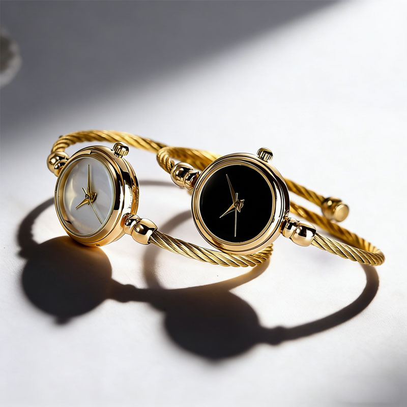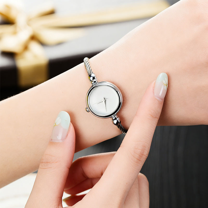 ins风女士手链手镯表学生简约百搭时尚石英表光面细带自由手镯表