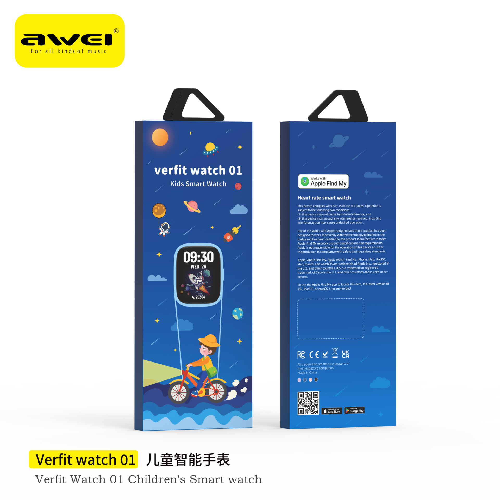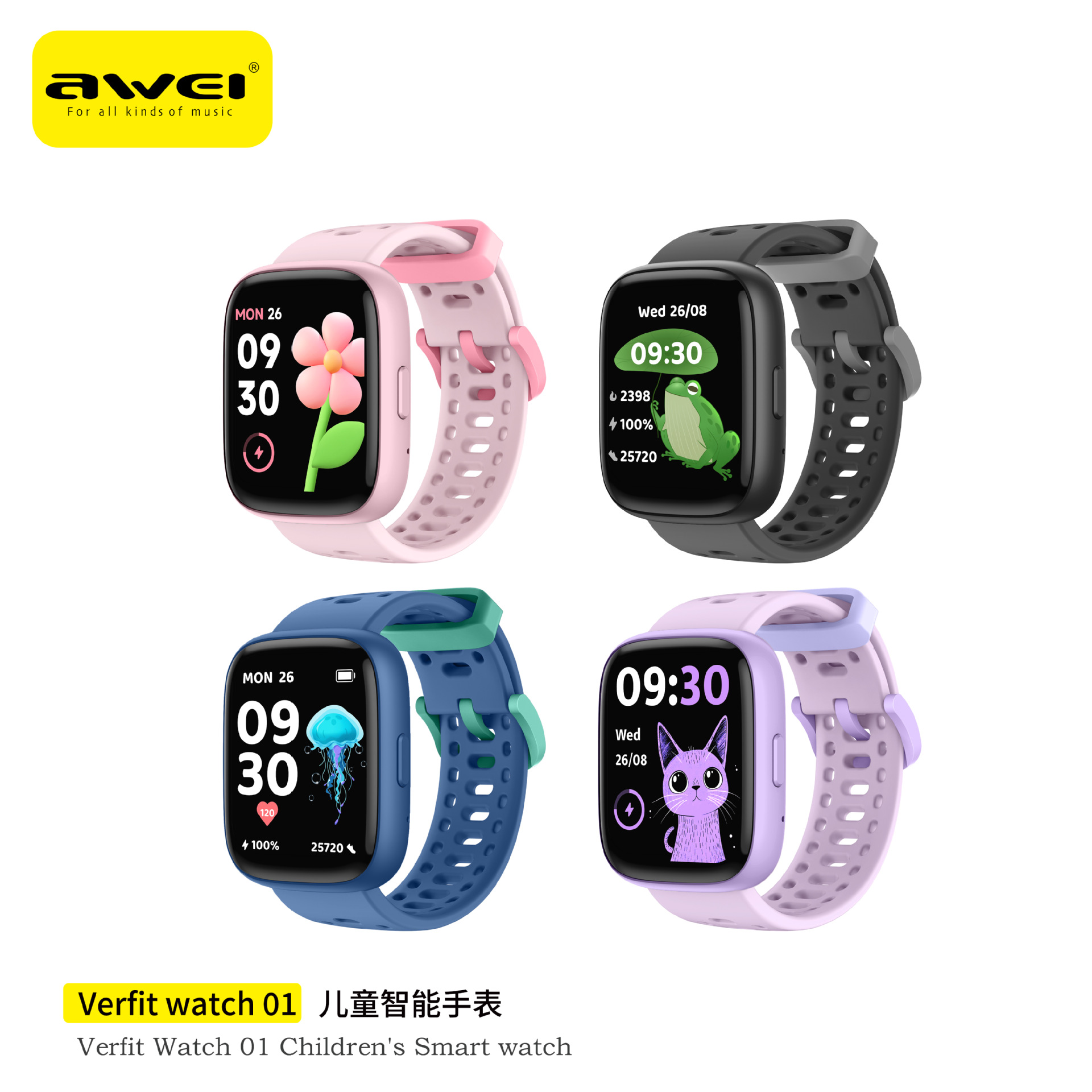 Awei儿童智能手表防水Find My提醒心率血氧监测远程拍照运动手表