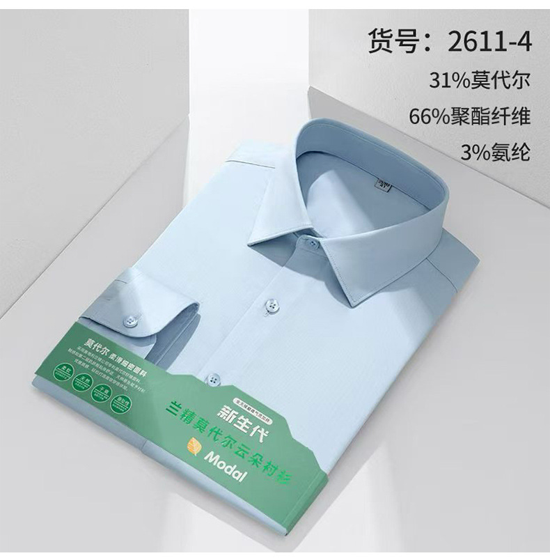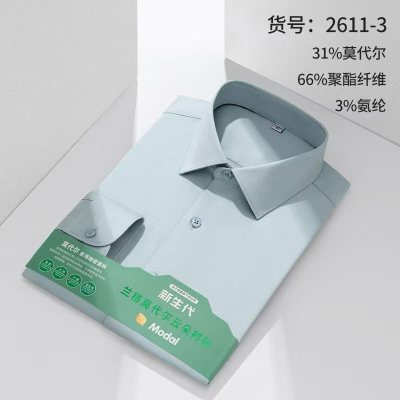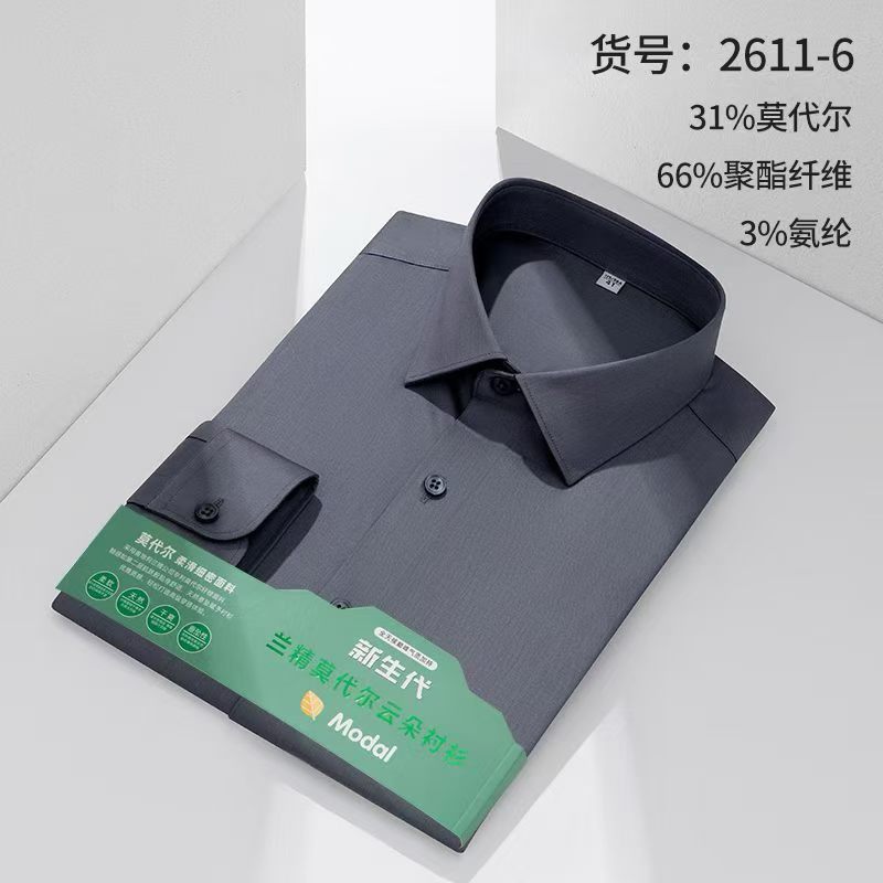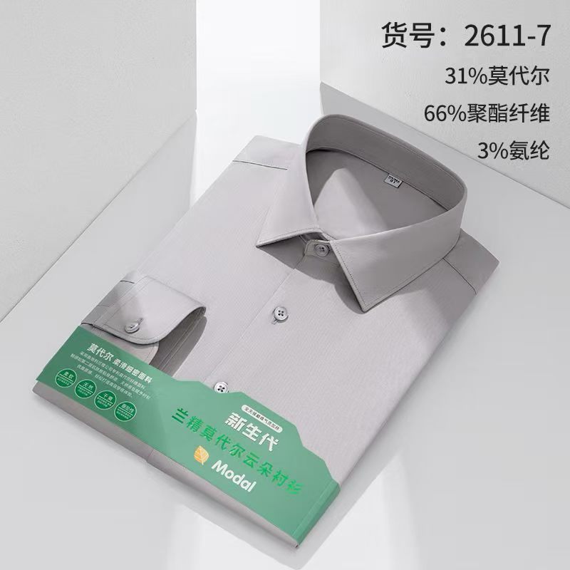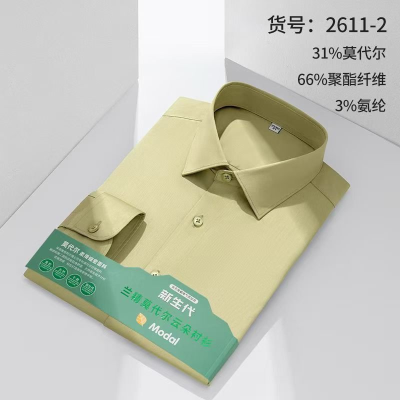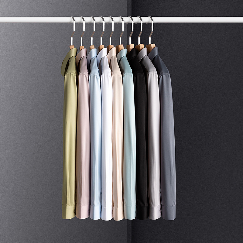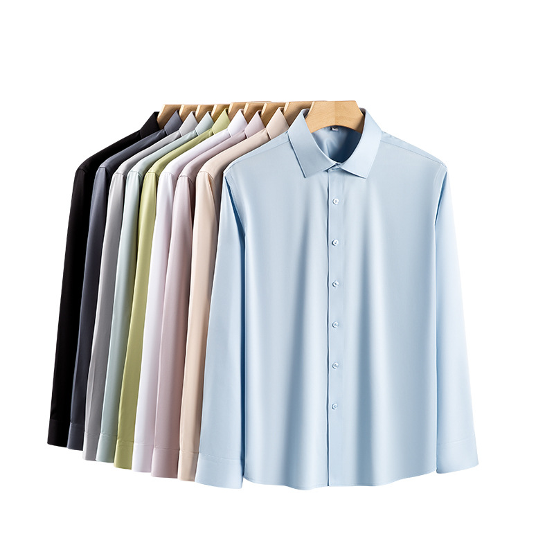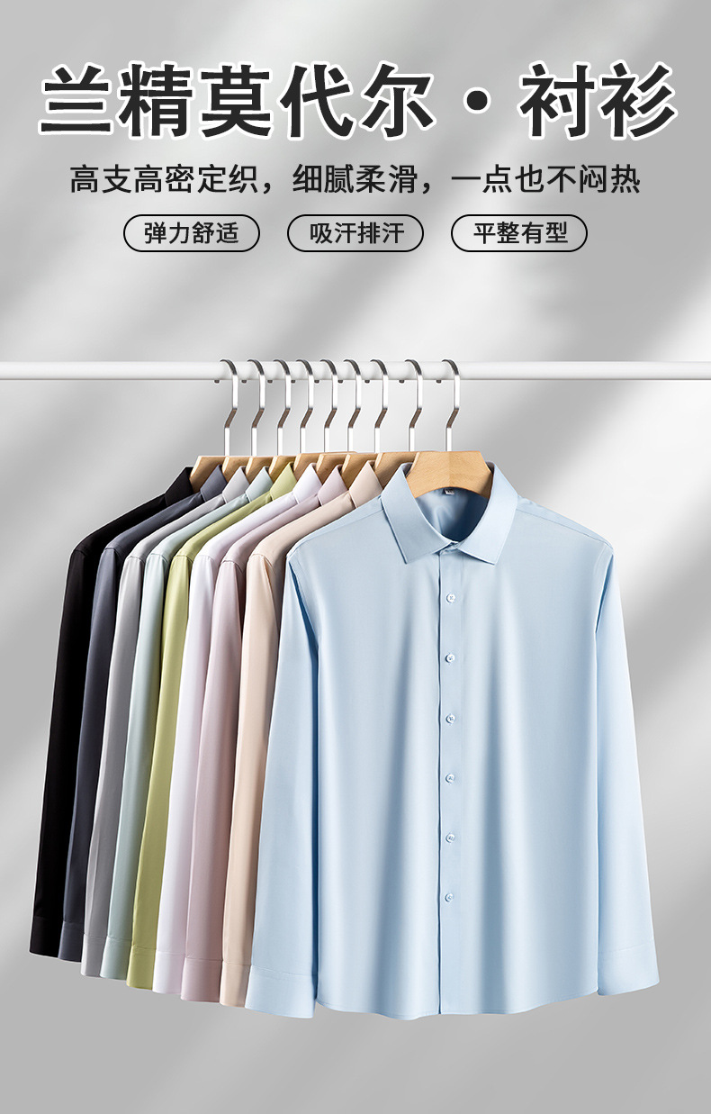 莫代尔衬衫男士无痕免烫弹力舒适长袖衬衣商务休闲衬衫
