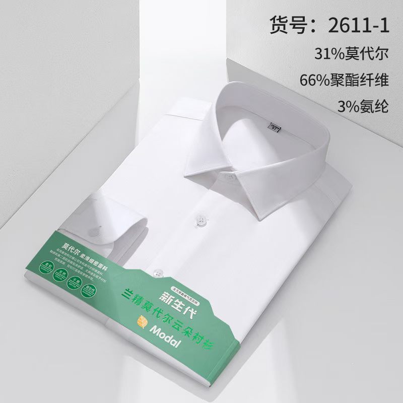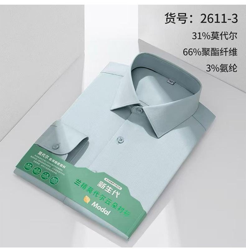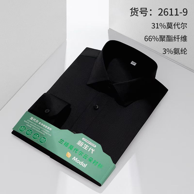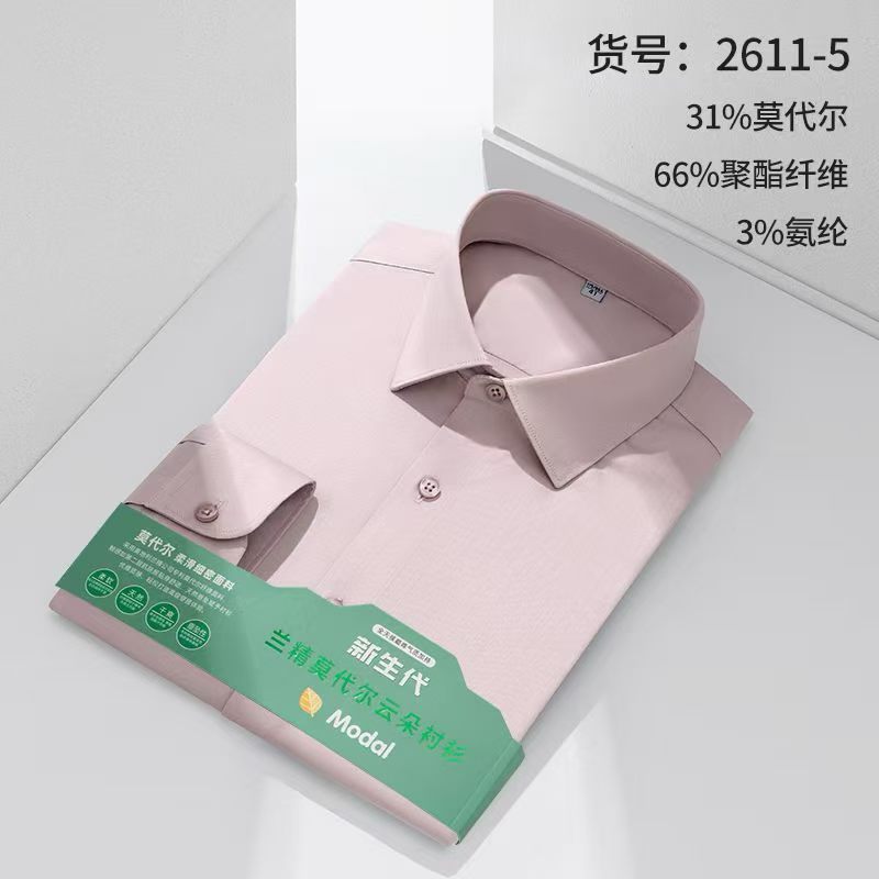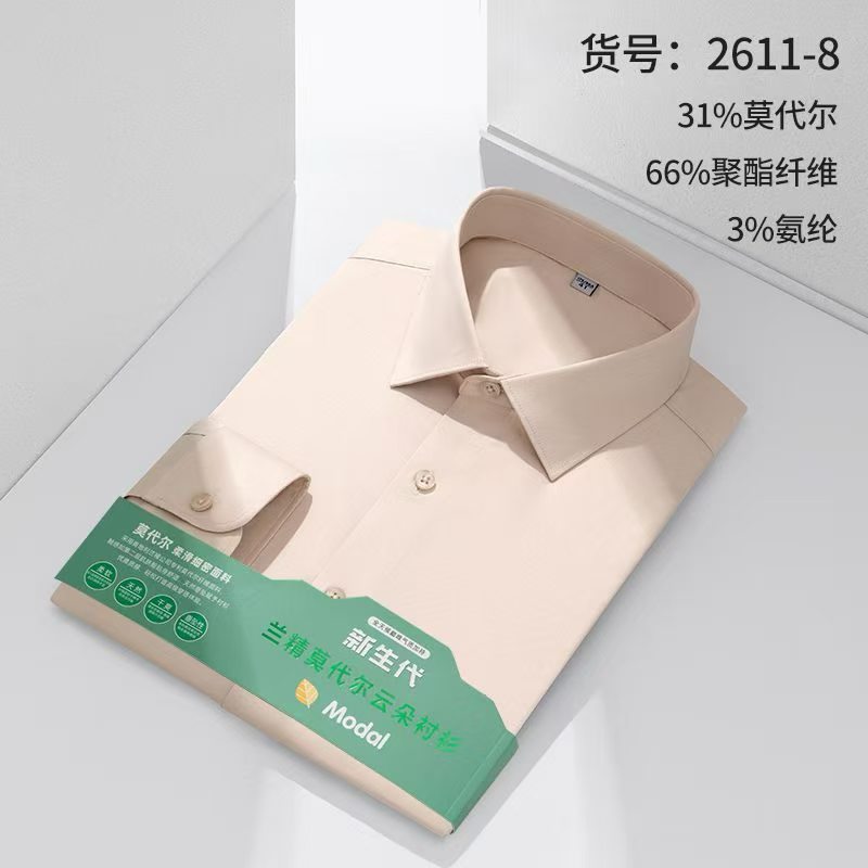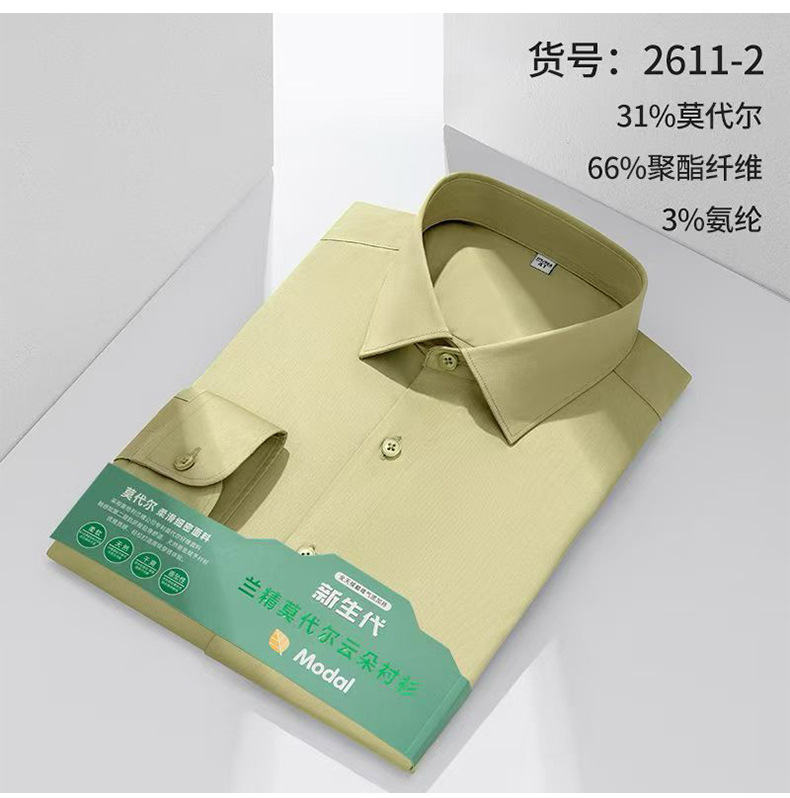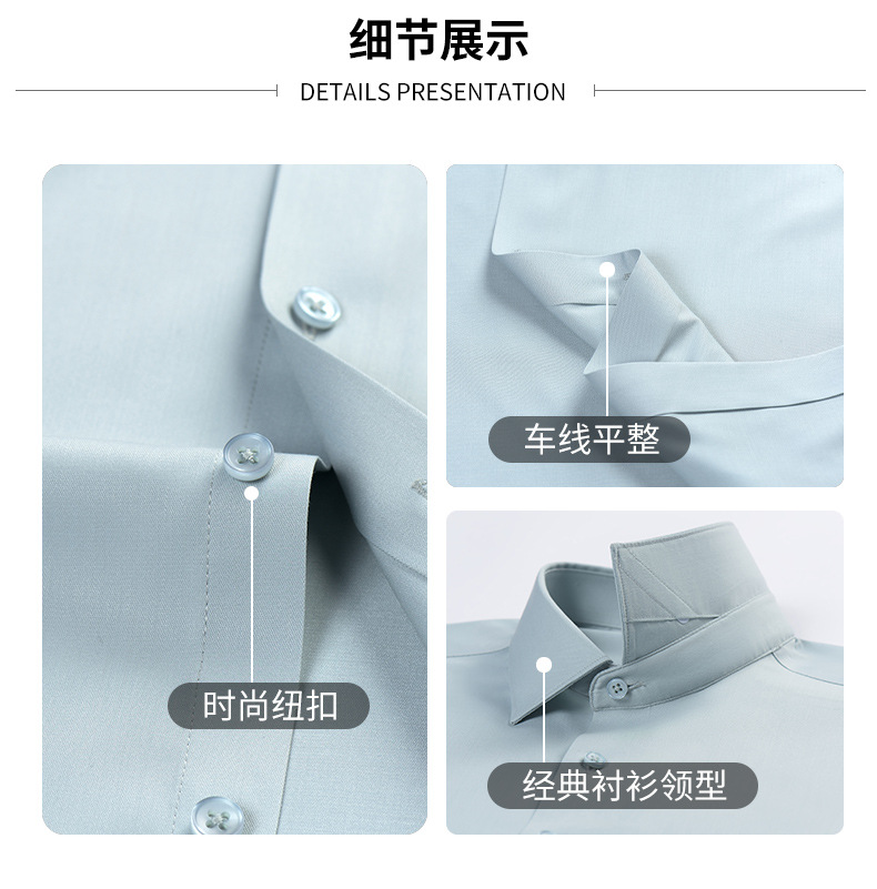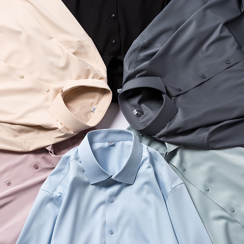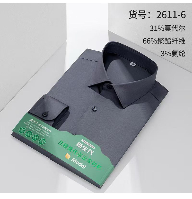 莫代尔衬衫男士无痕免烫弹力舒适长袖衬衣商务休闲衬衫