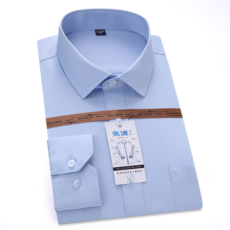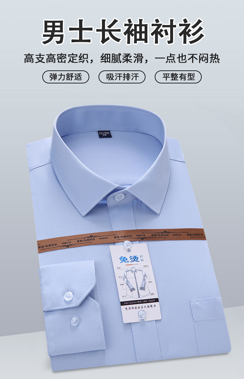液氨免烫男女浅蓝长袖衬衣 商务职场正装衬衫 基础款垂顺通勤上衣
