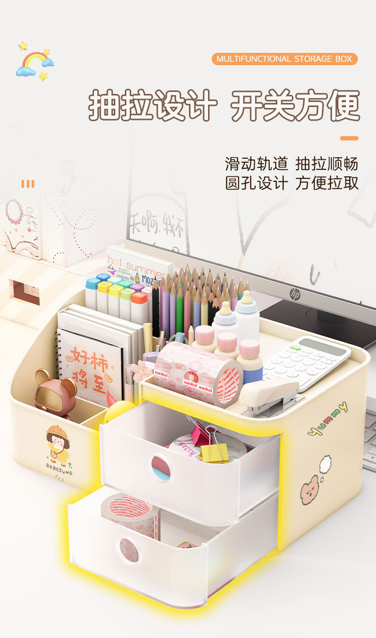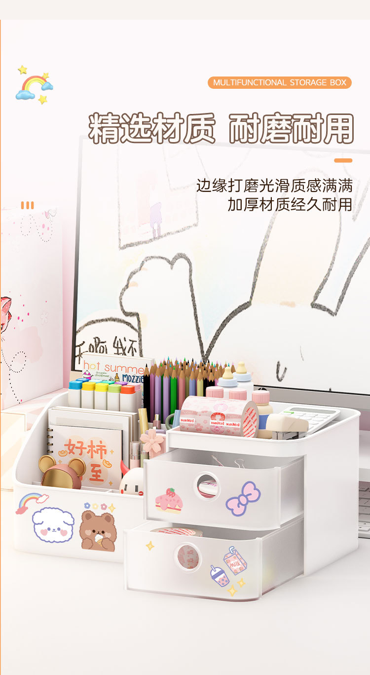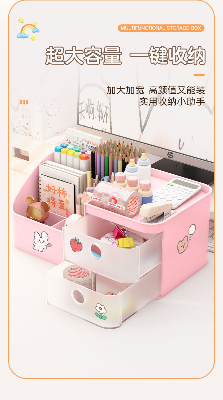 桌面收纳盒多层抽屉式宿舍儿童ins风高颜值女孩学生杂物收纳盒