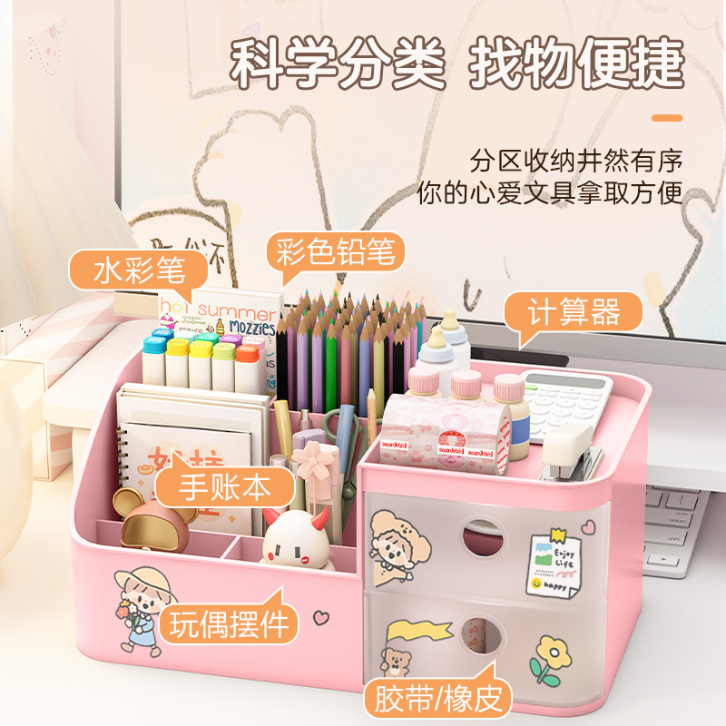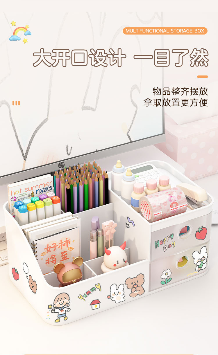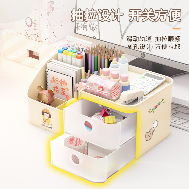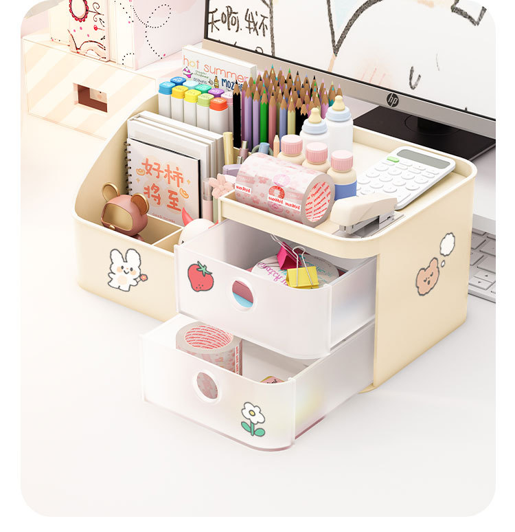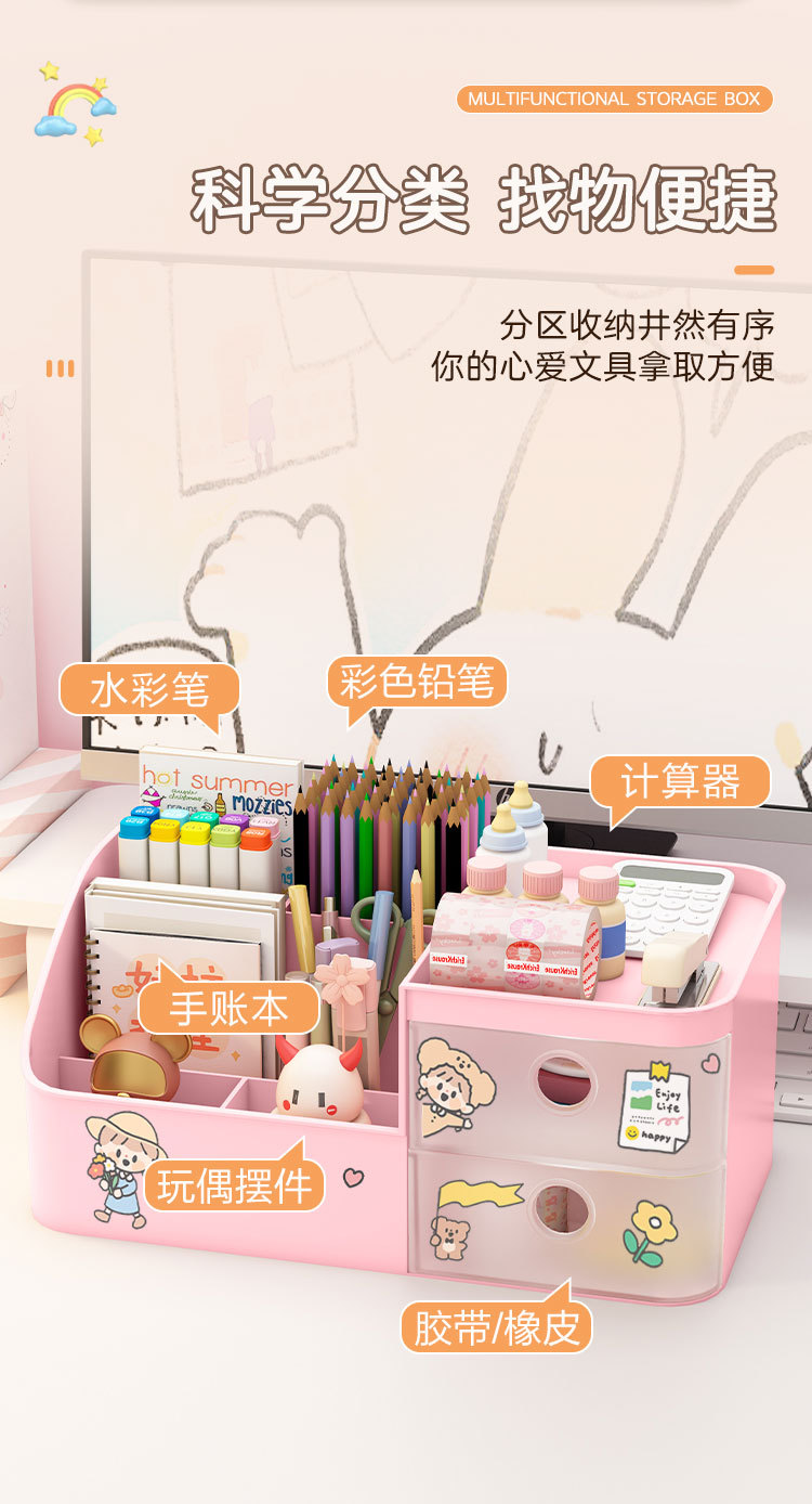 桌面收纳盒多层抽屉式宿舍儿童ins风高颜值女孩学生杂物收纳盒