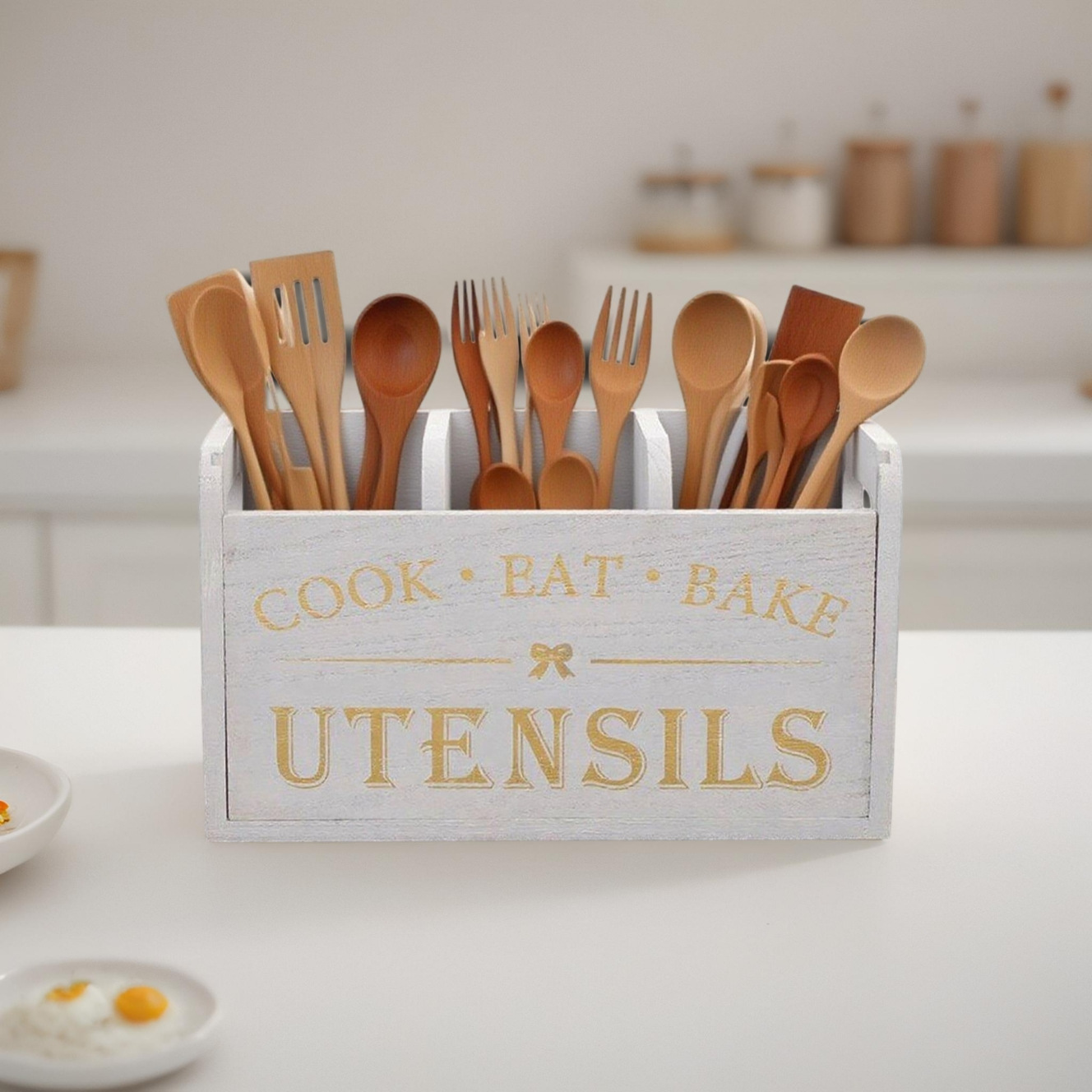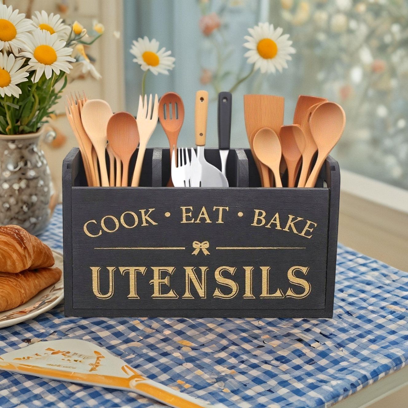 跨境木制做旧收纳盒厨房餐具筷勺整理盒手提西餐厅刀叉分类储物盒