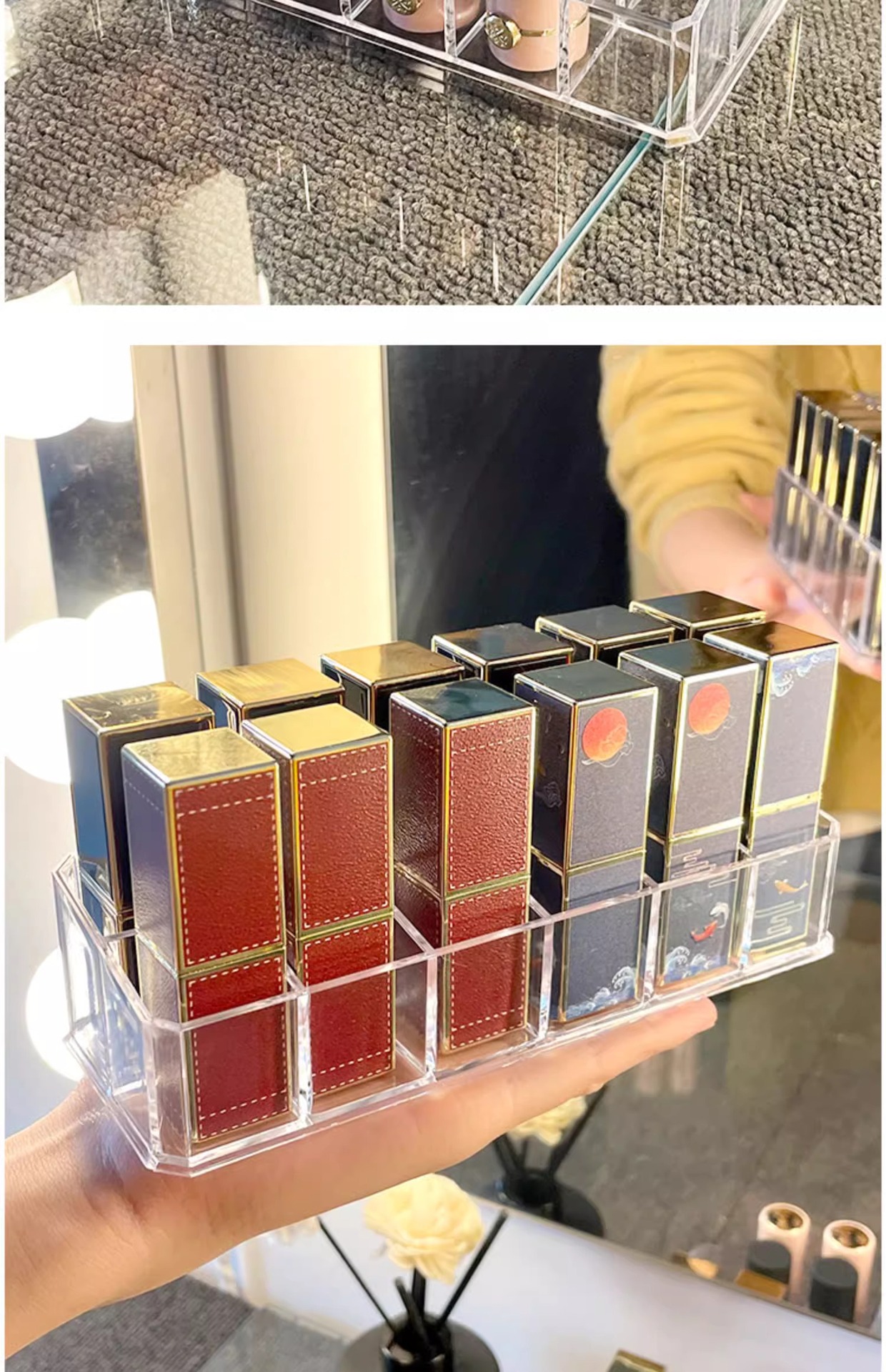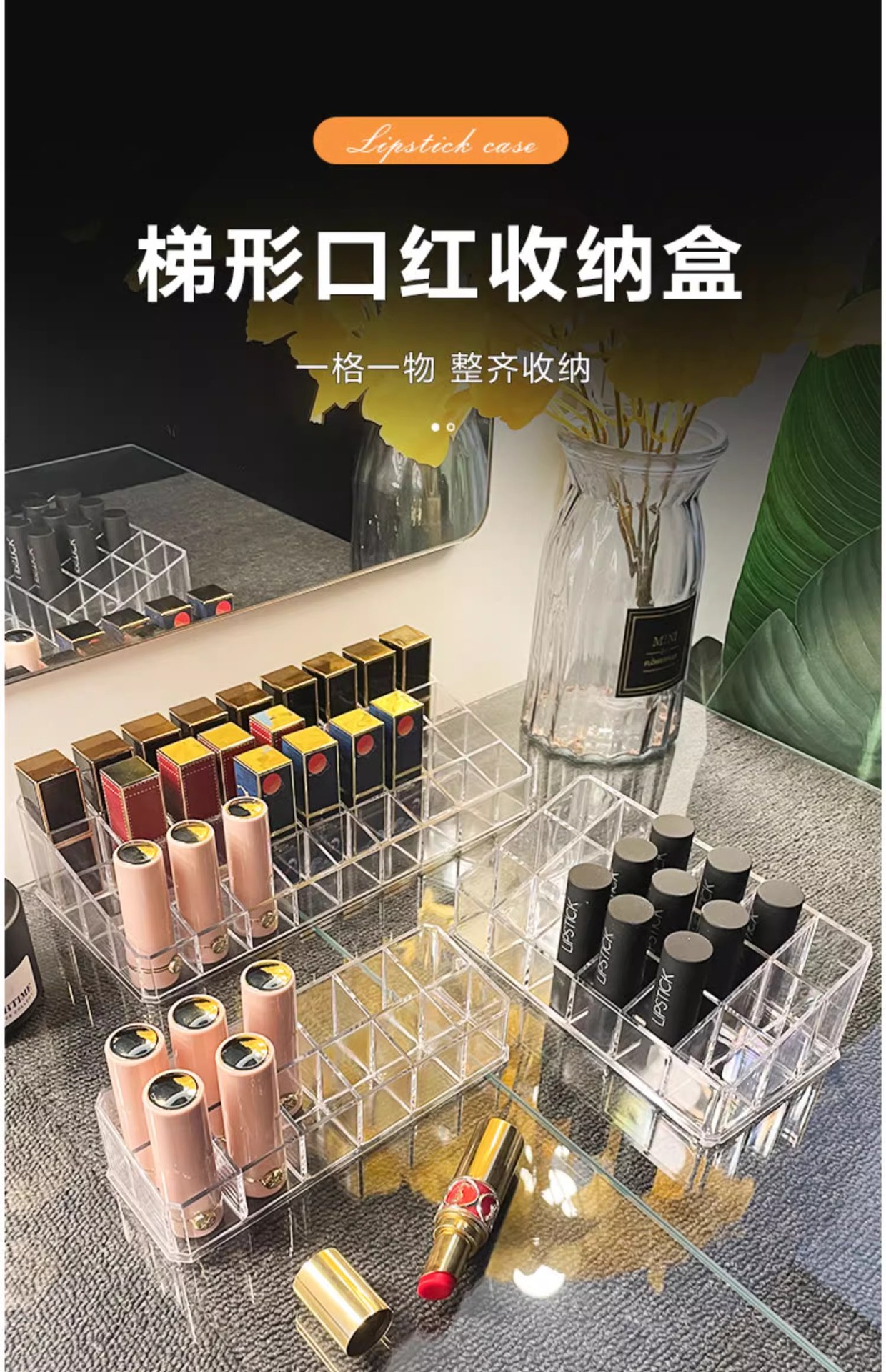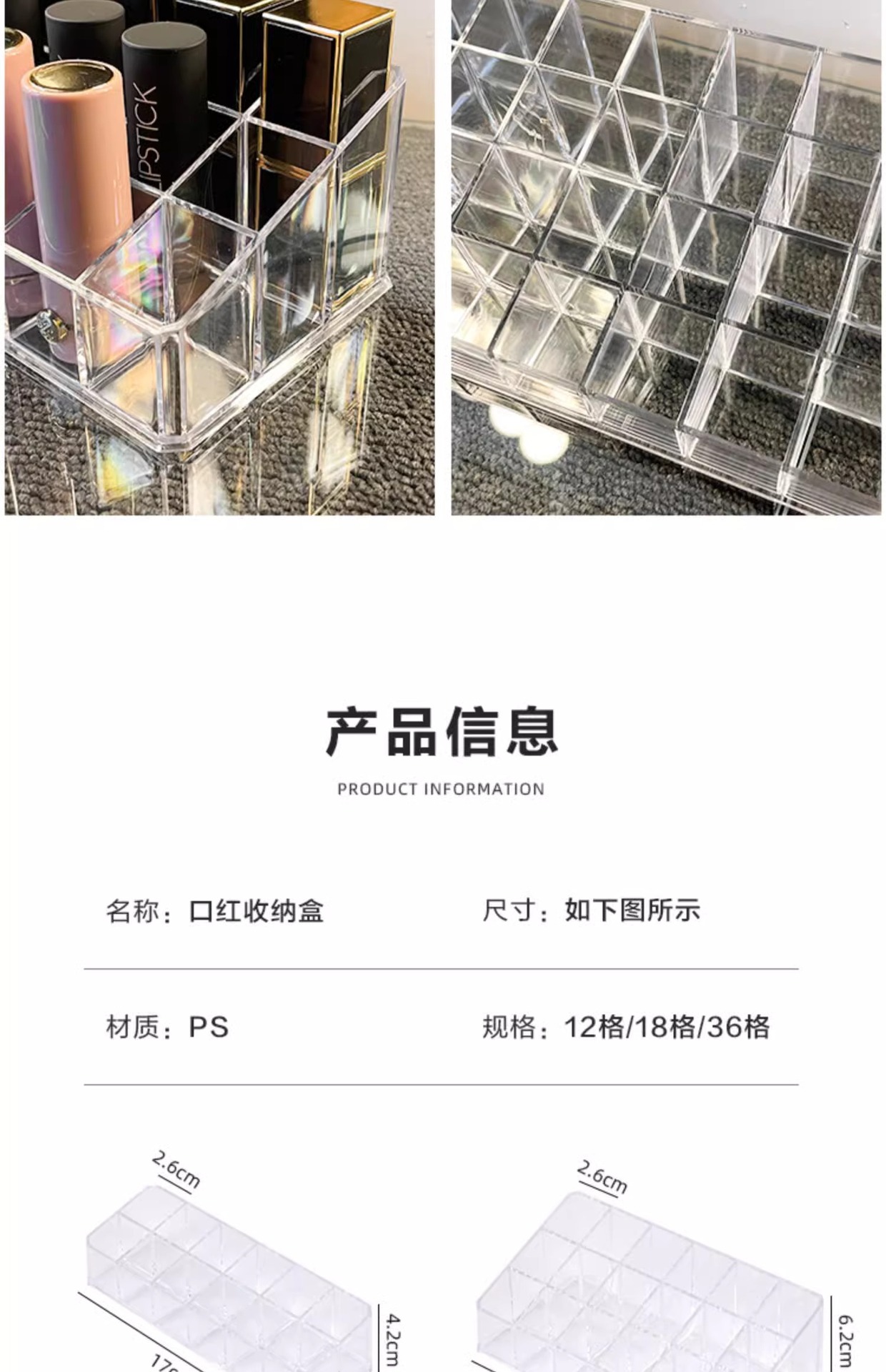 12/18/36格盒装口红收纳盒轻奢透明亚克力收纳架桌面化妆品置物架