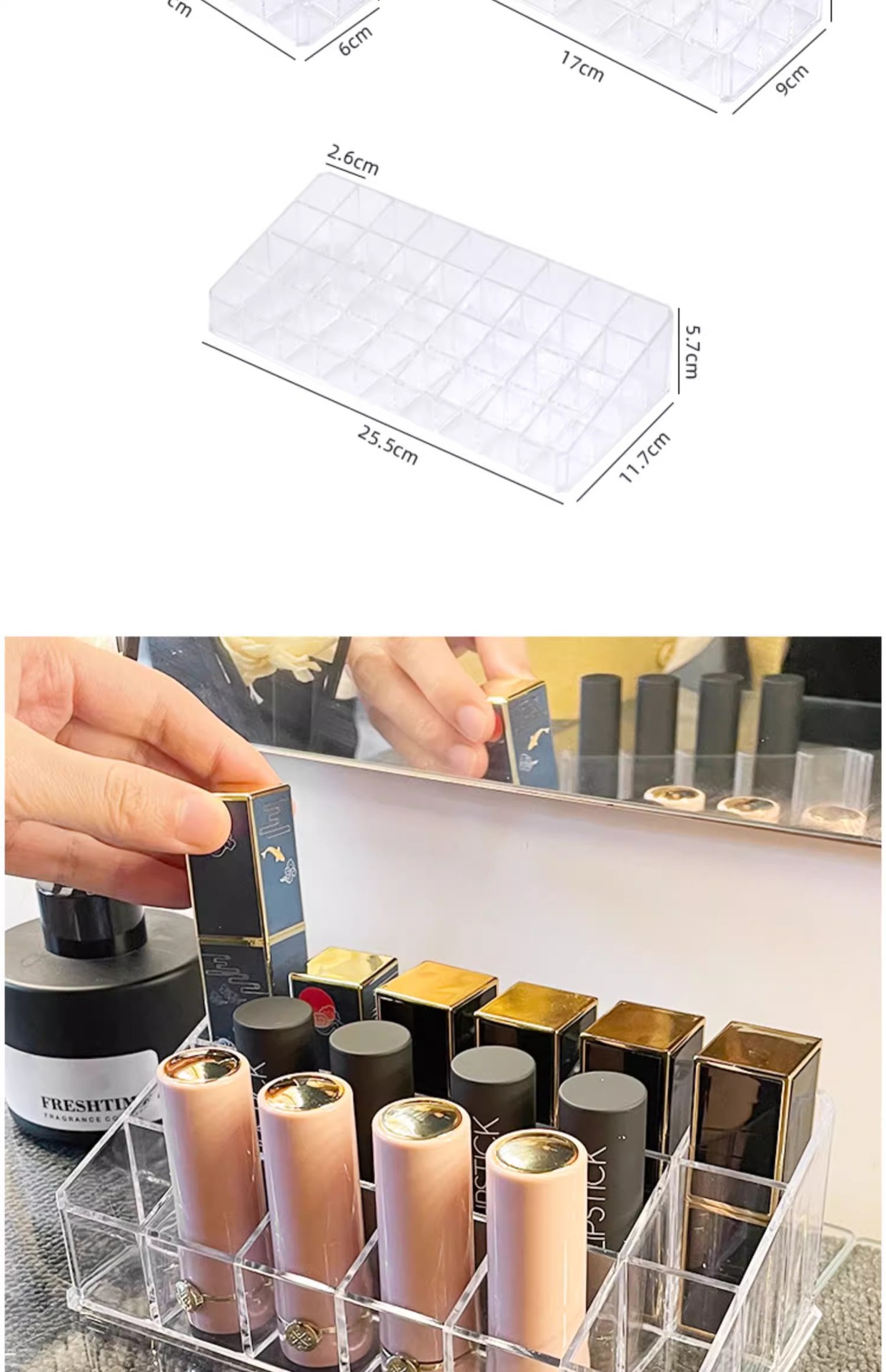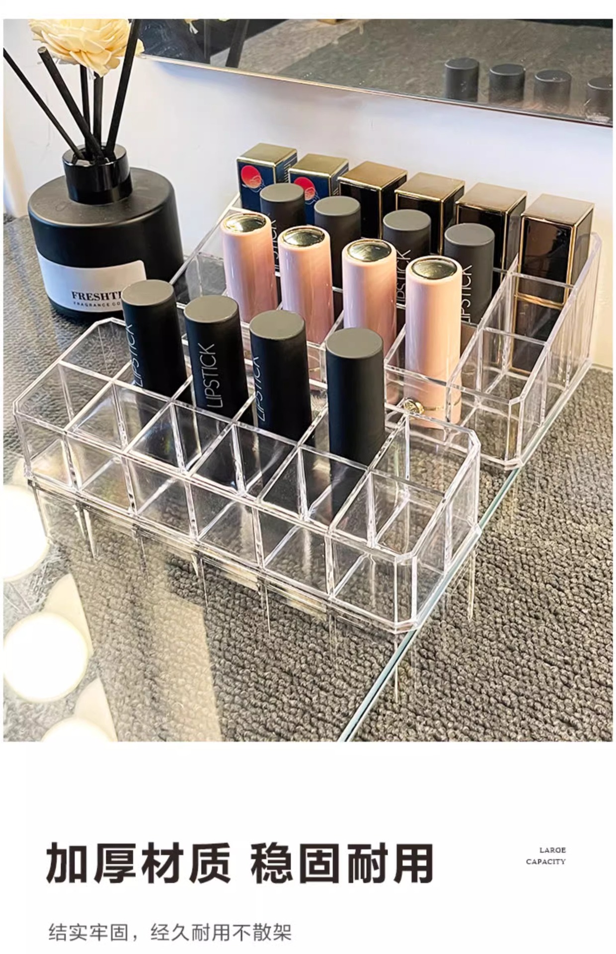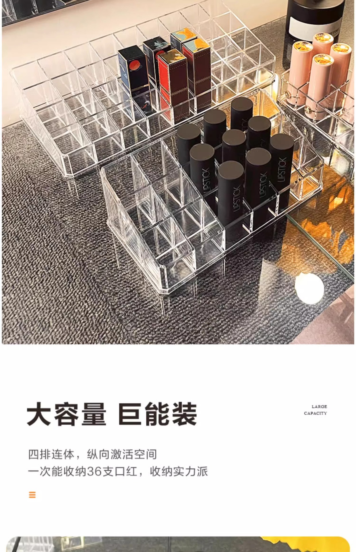12/18/36格盒装口红收纳盒轻奢透明亚克力收纳架桌面化妆品置物架