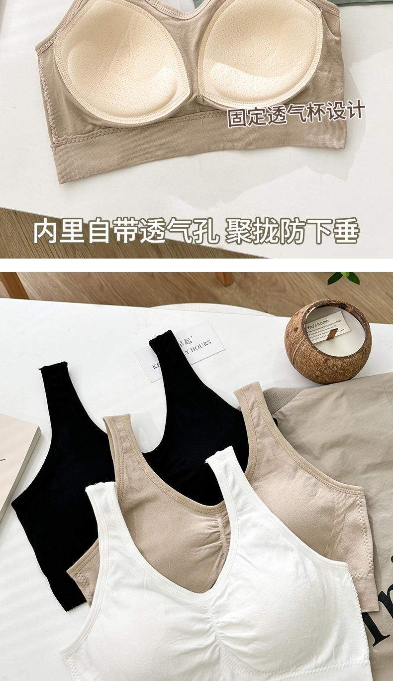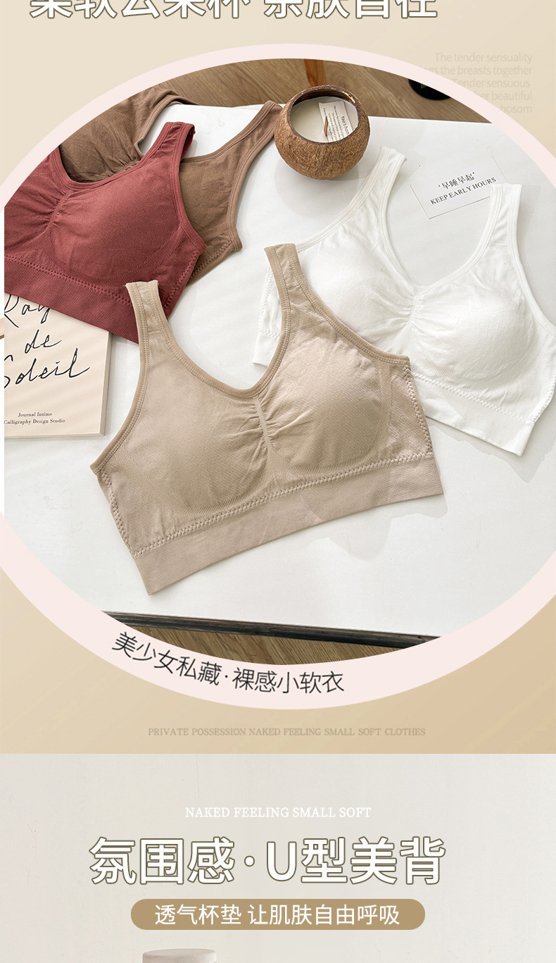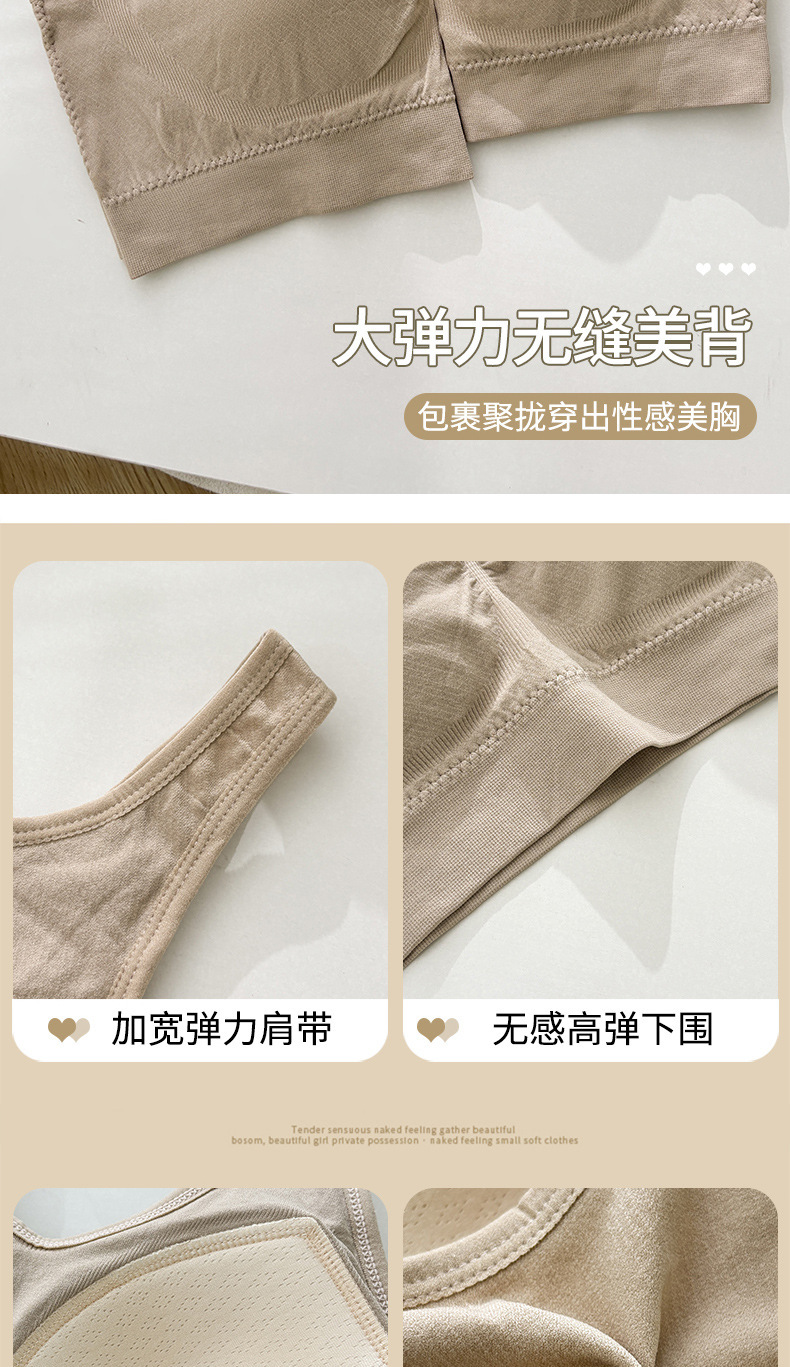美背运动文胸女一片式固定杯内衣小胸抹胸大码背心透气少女裹胸