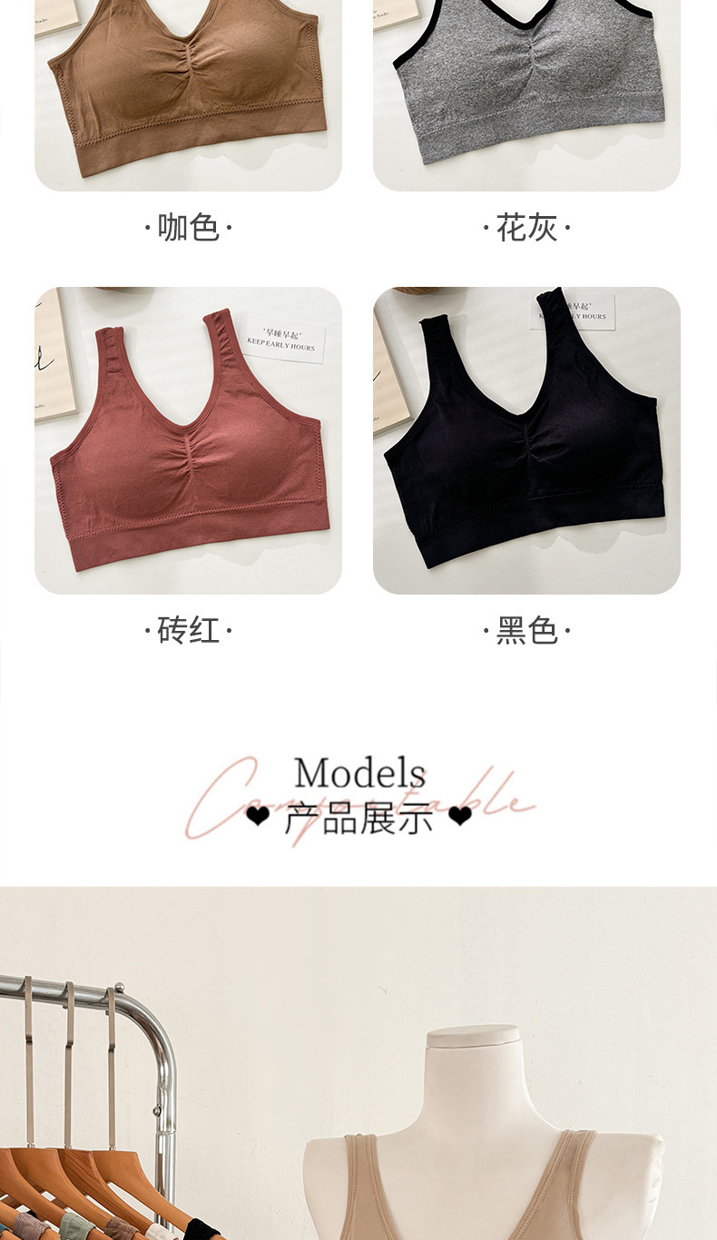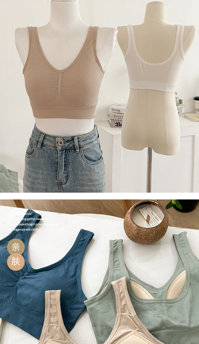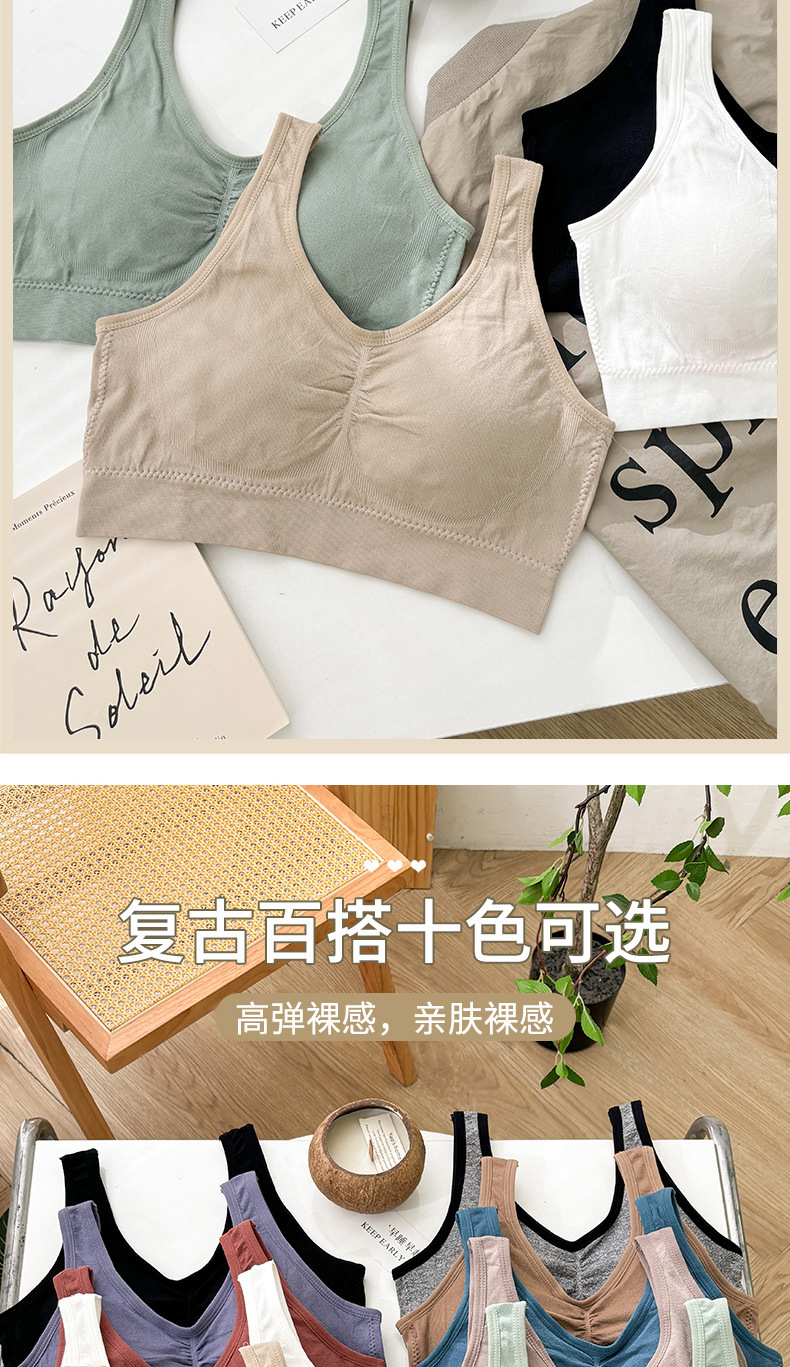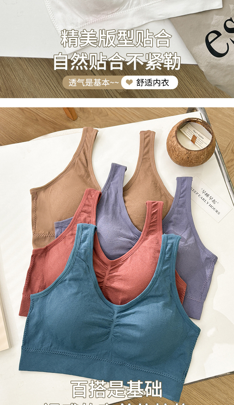 美背运动文胸女一片式固定杯内衣小胸抹胸大码背心透气少女裹胸