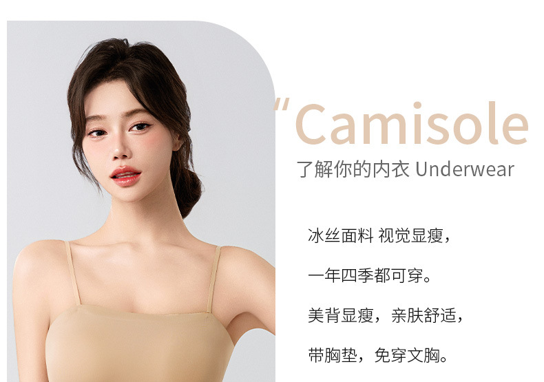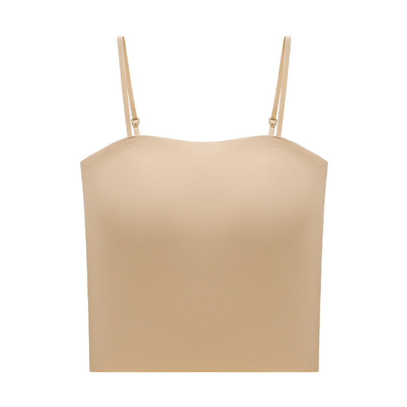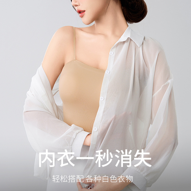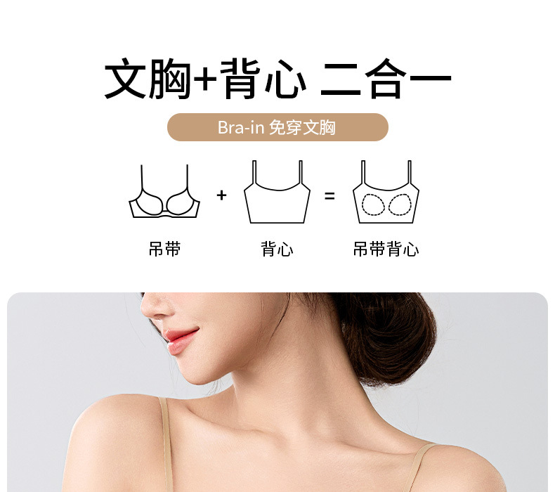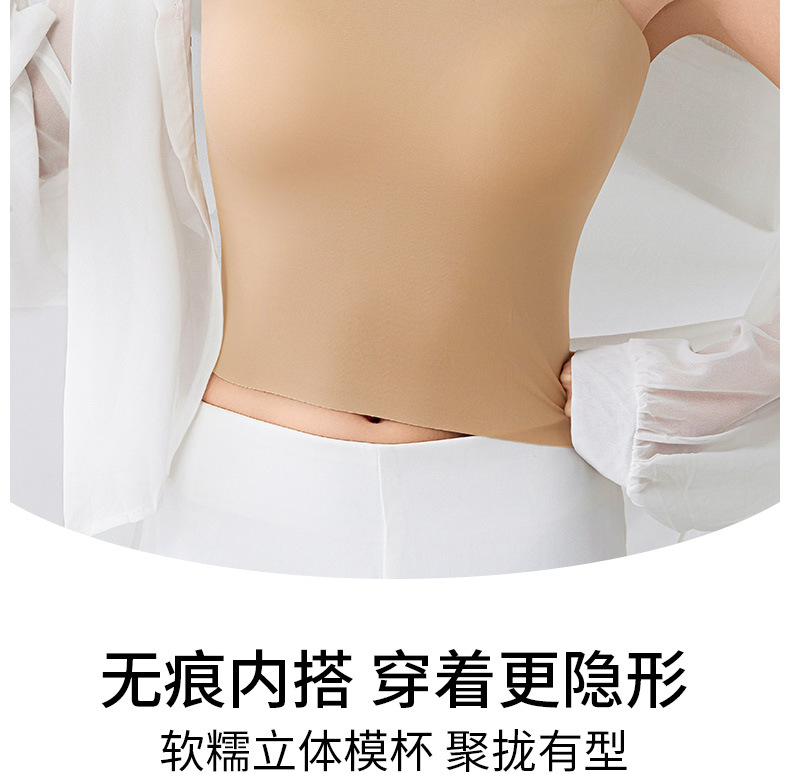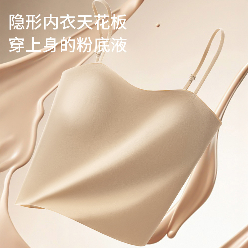 粉底液内衣女无痕冰丝隐形收副乳美背吊带文胸一体款肤色背心夏季