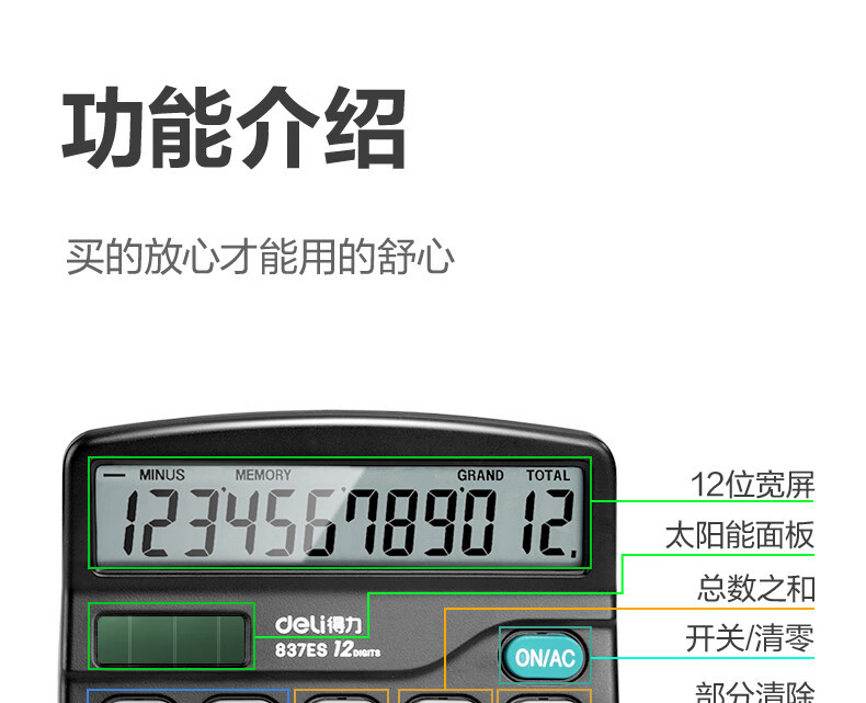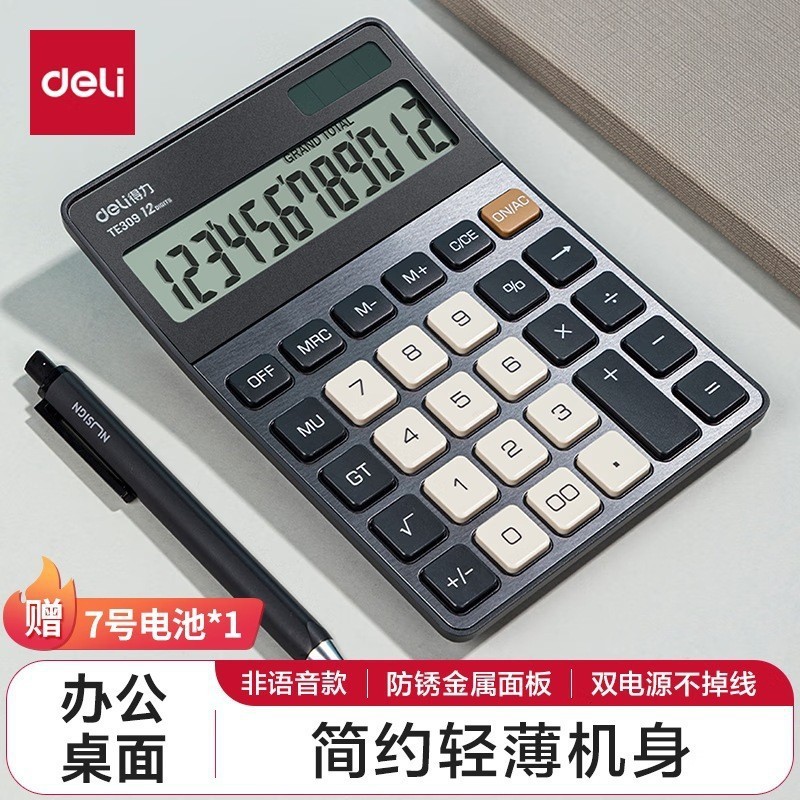 得力837计算器便携双电源大屏幕财务会计学生办公12位计算机批发
