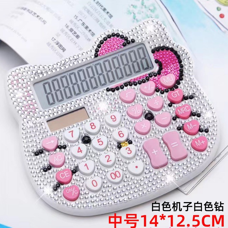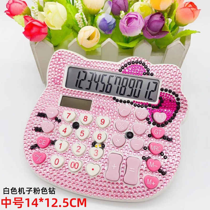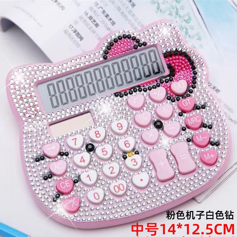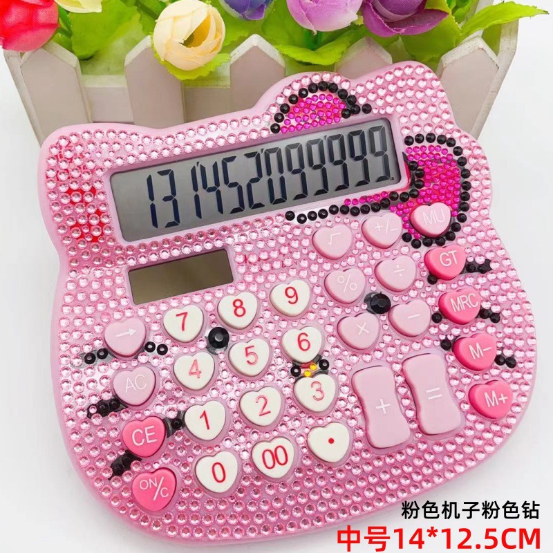 跨境猫头水晶带钻计算器蝴蝶结心形按键贴钻太阳能卡通镶钻计算机