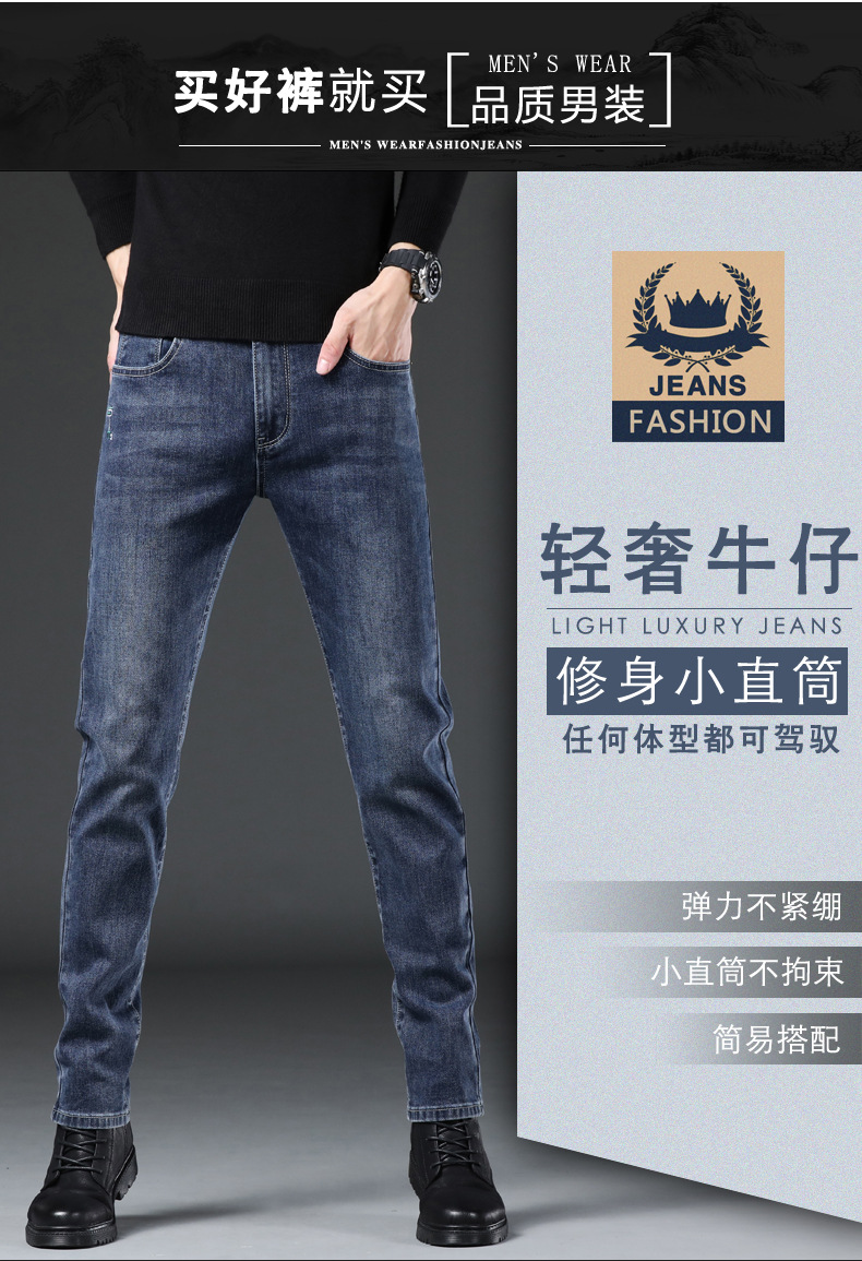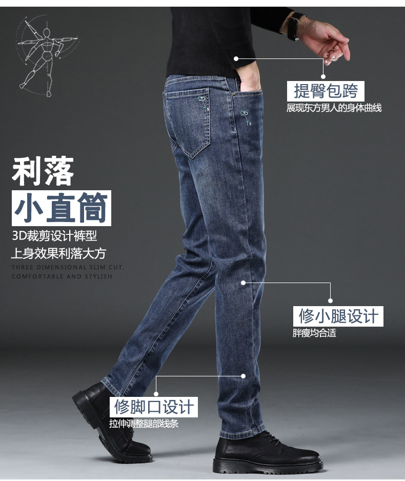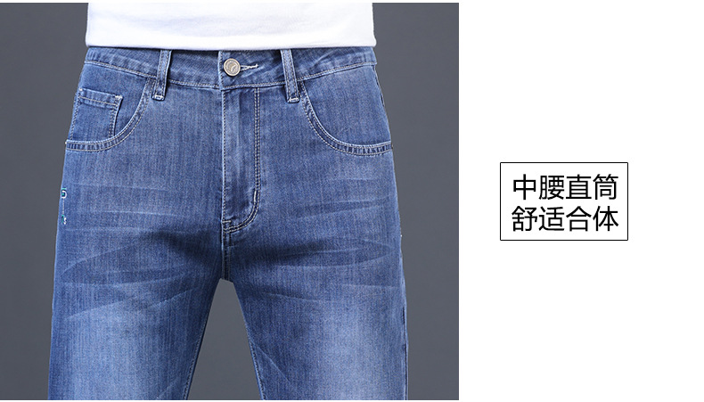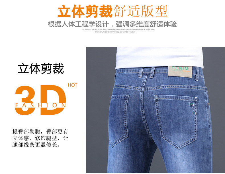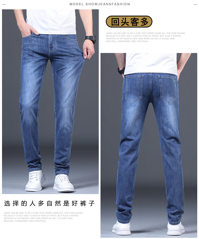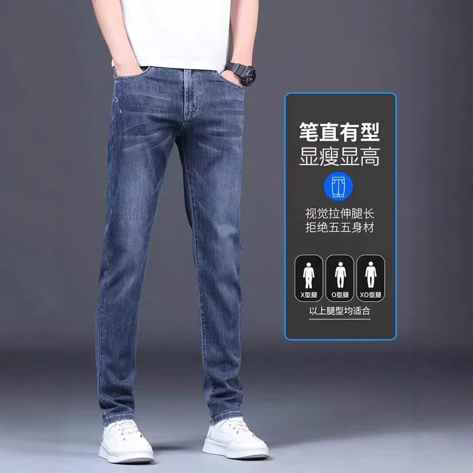 新款牛仔裤男士夏季薄款百搭时尚修身弹力小直筒男长裤子休闲百搭