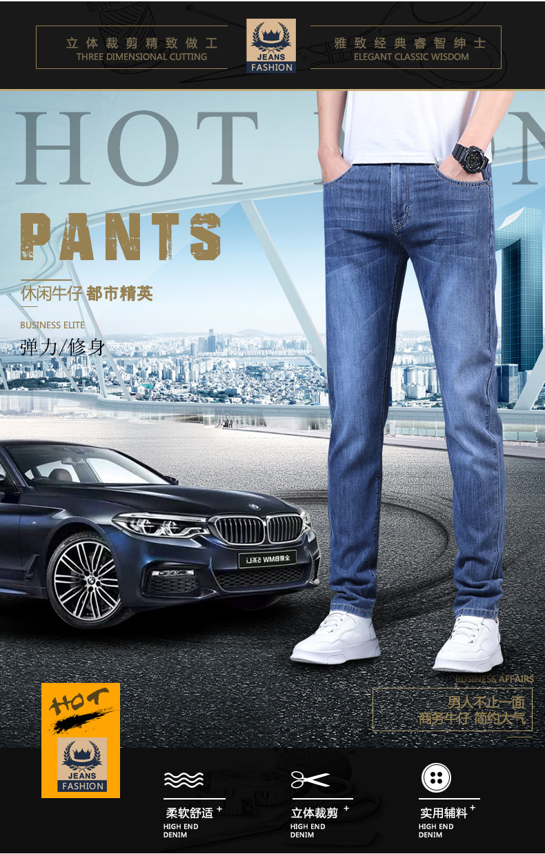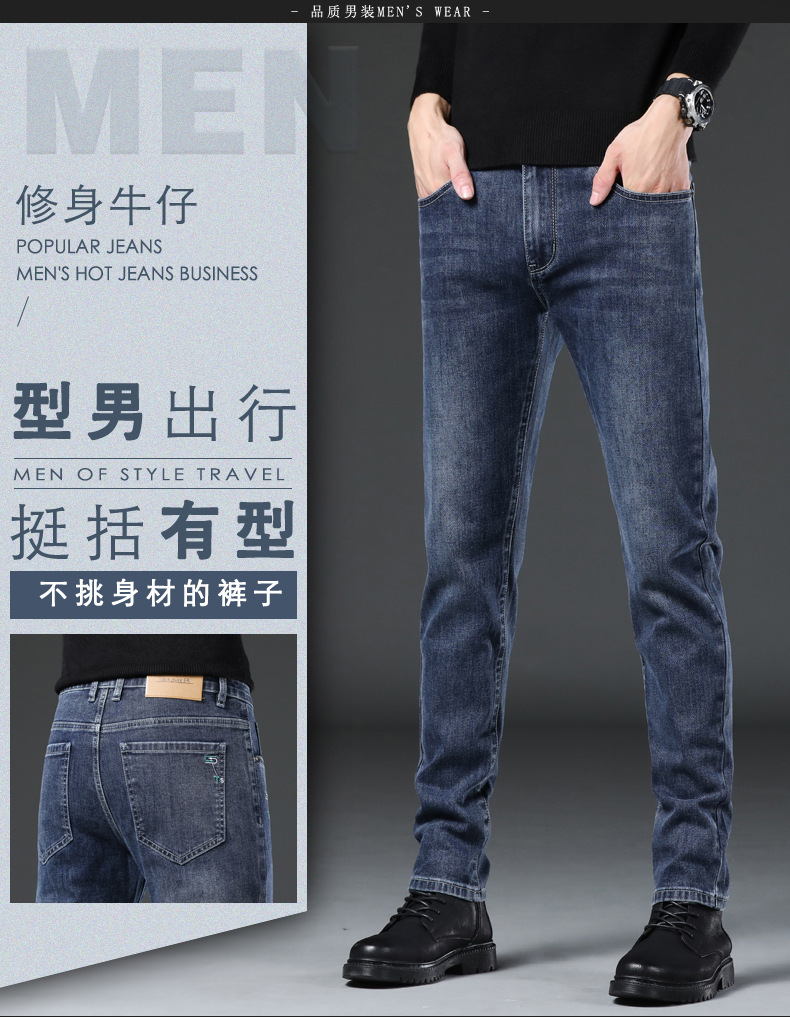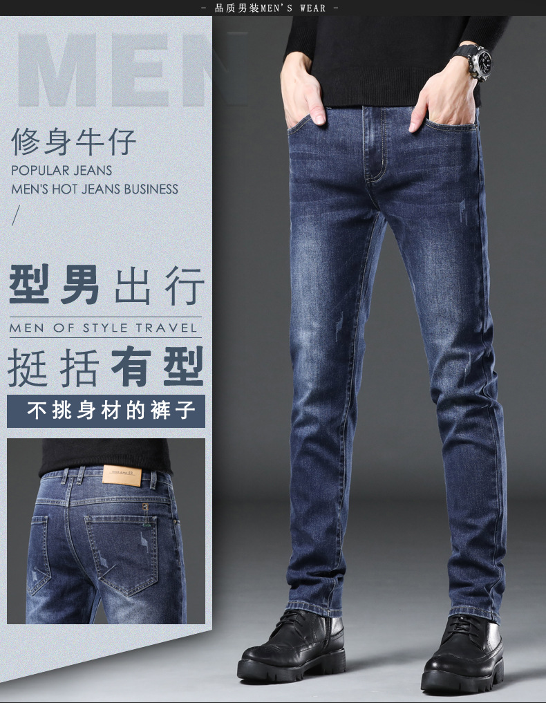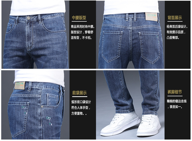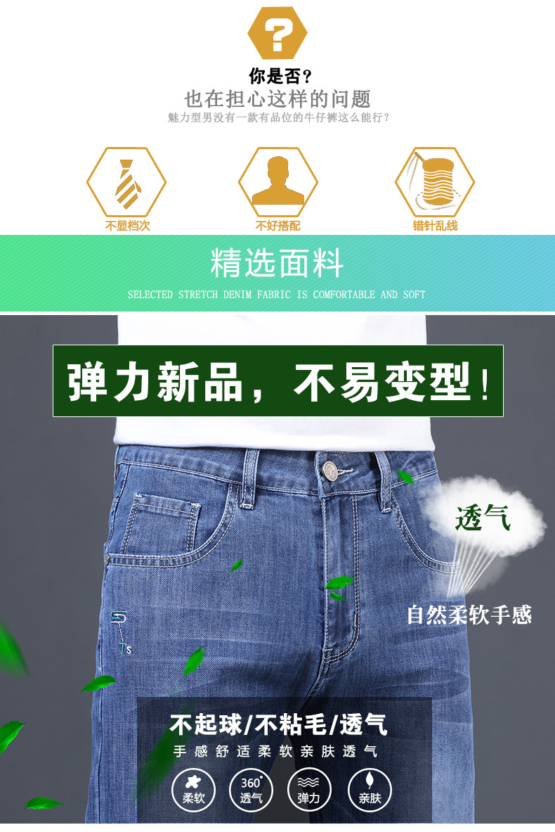 新款牛仔裤男士夏季薄款百搭时尚修身弹力小直筒男长裤子休闲百搭