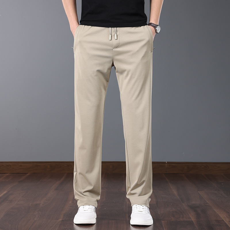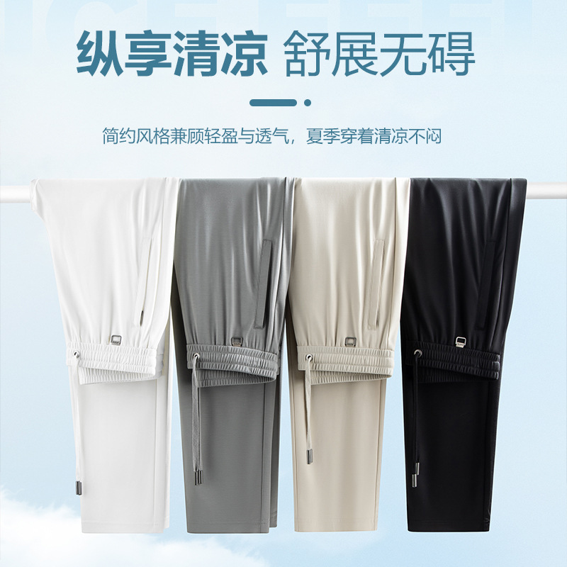 2025夏季薄款男桑蚕丝夏季清凉亲肤松紧腰直筒宽松男裤