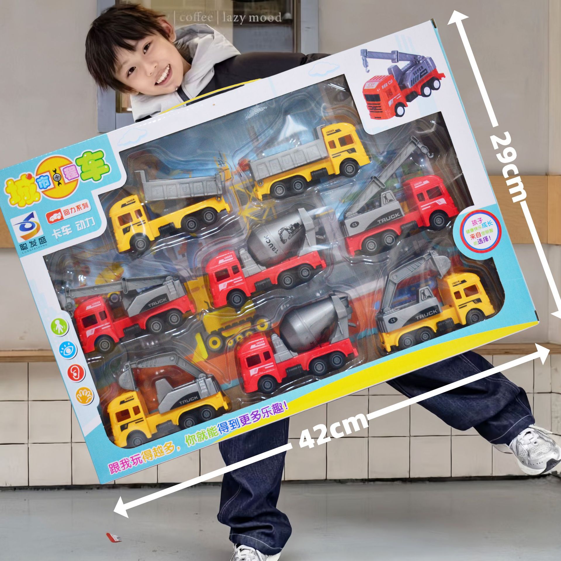 礼盒男孩工程车套装玩具消防模型惯性回力车玩具礼品地摊