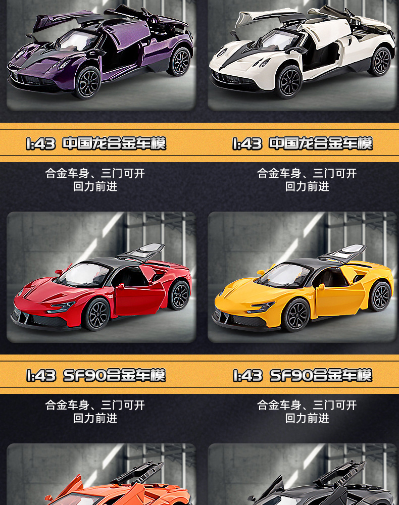 1:43合金汽车车模回力玩具仿真合金模型礼品跨境合金跑车玩具批发