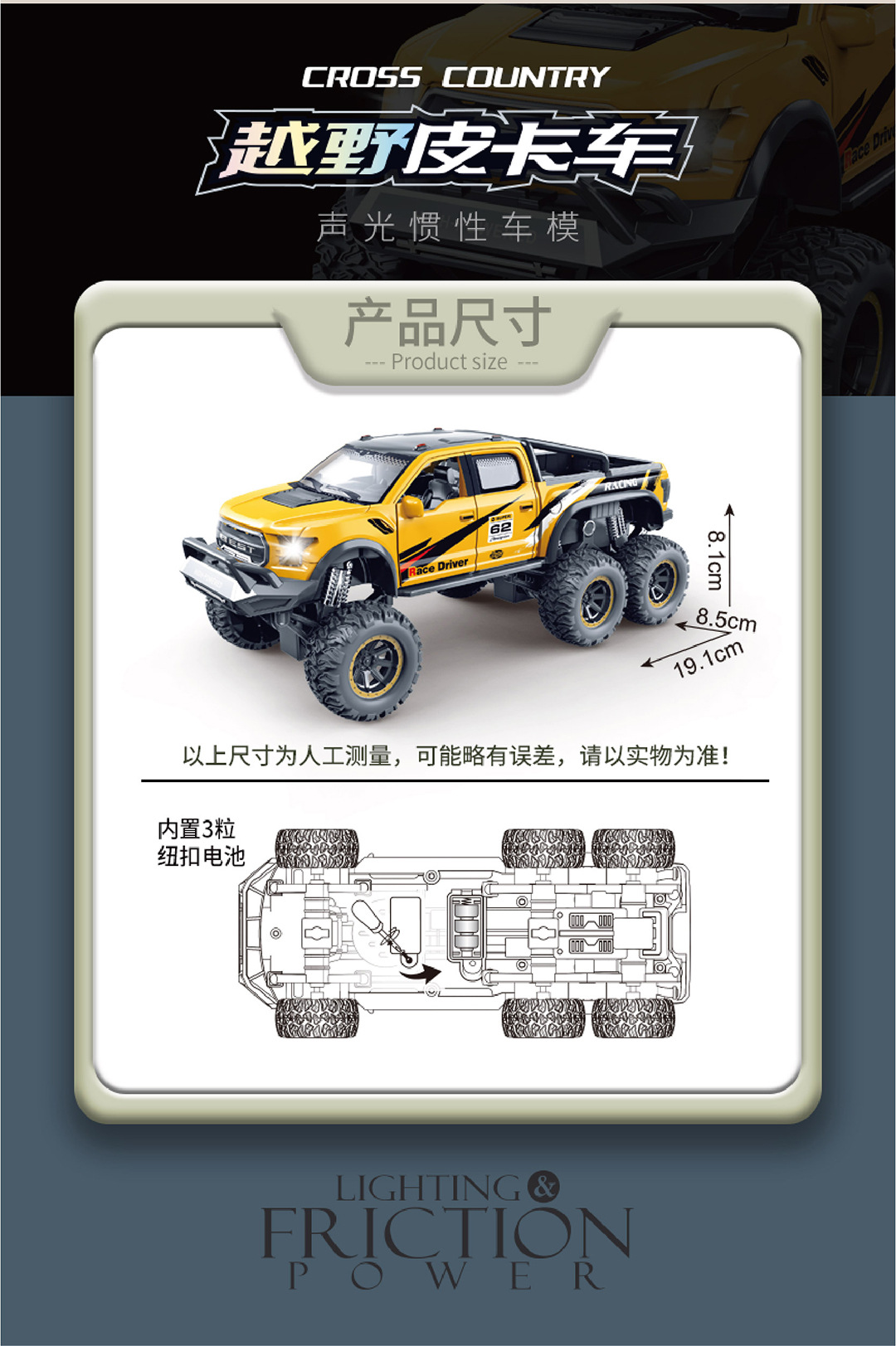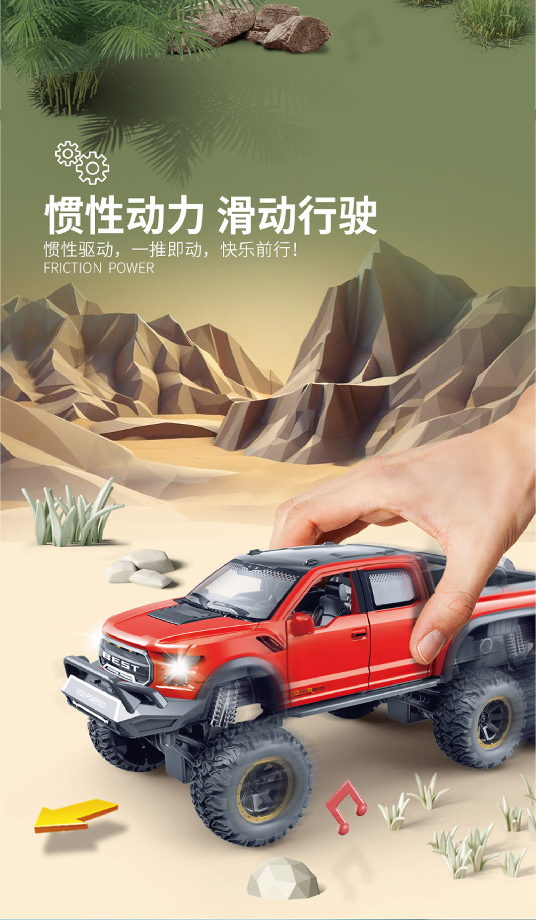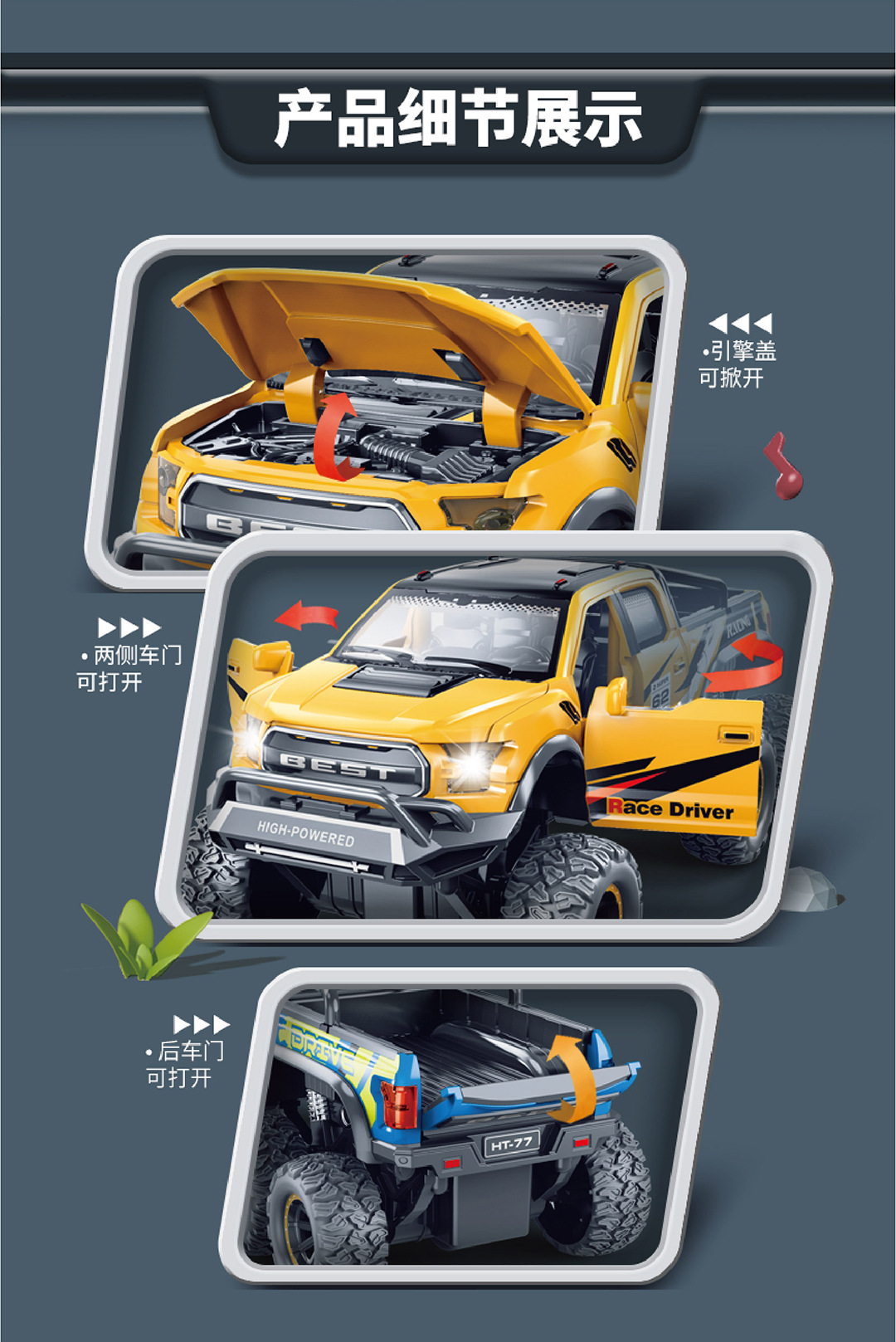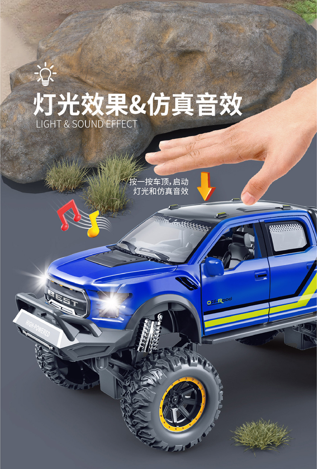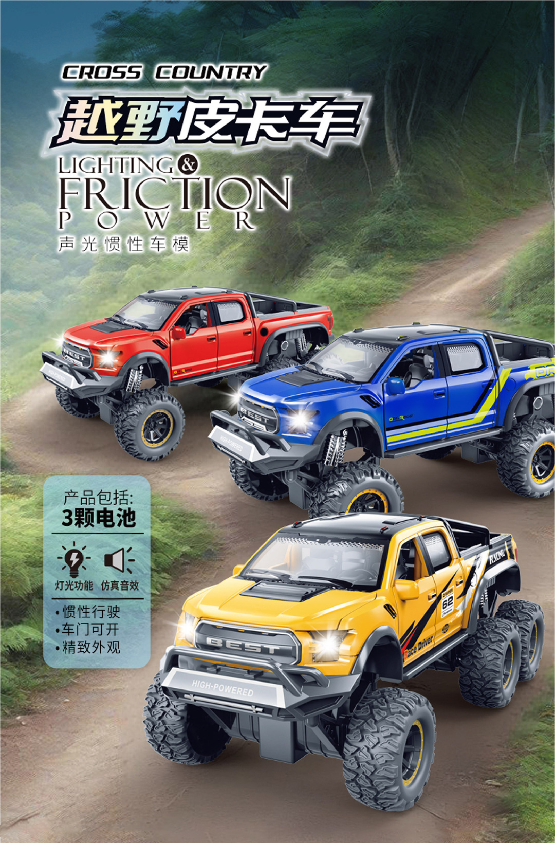 男孩皮卡车模型惯性大轮越野车声光可开门玩具车3-6岁男孩小汽车
