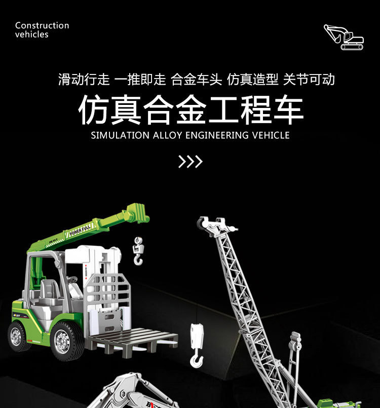 合金工程车套装挖掘机铲雪车玩具男孩仿真儿童模型吊车搅拌车叉车