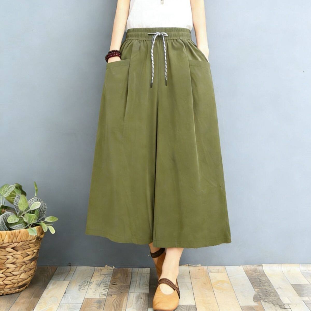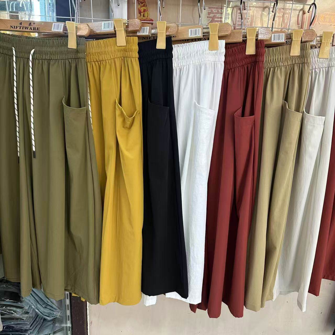 新款阔腿大脚夏季显瘦百搭女士速干裙裤休闲七分高腰宽松面膜裤
