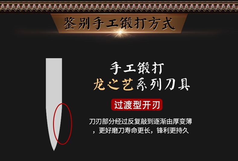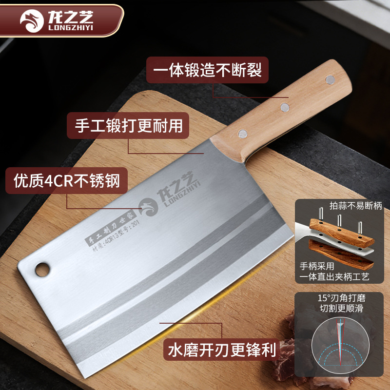 龙之艺锻打不锈钢刀切片刀厂家直销厨房刀具菜刀家用切片刀切菜刀