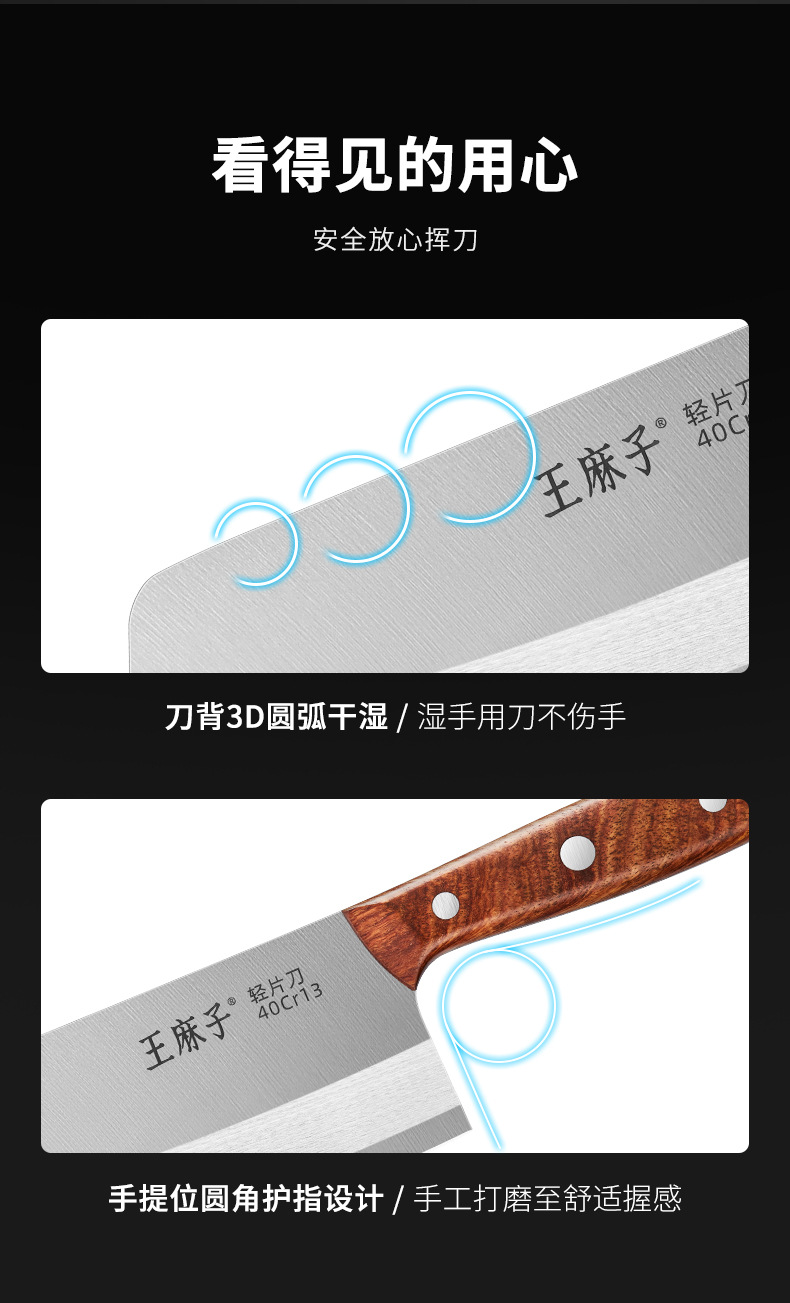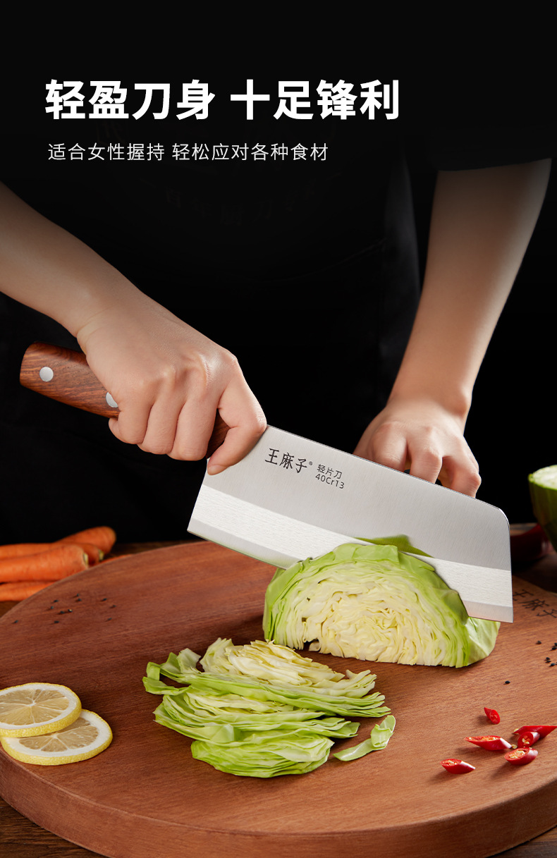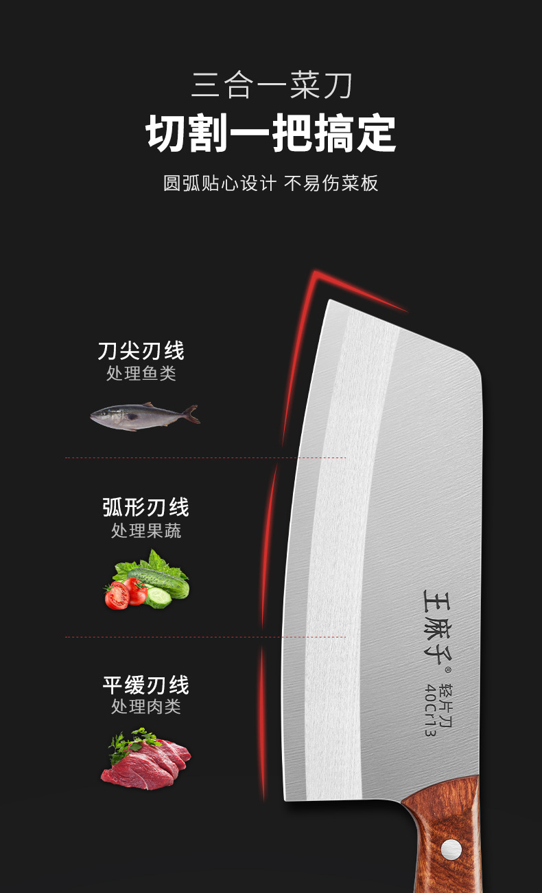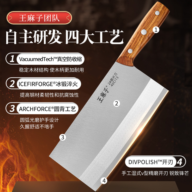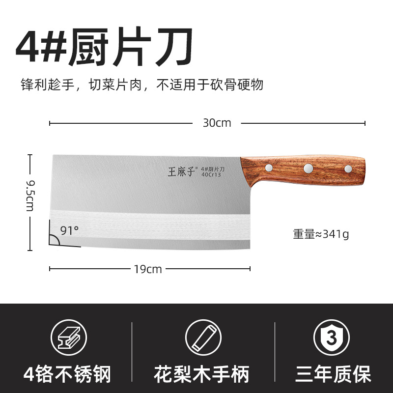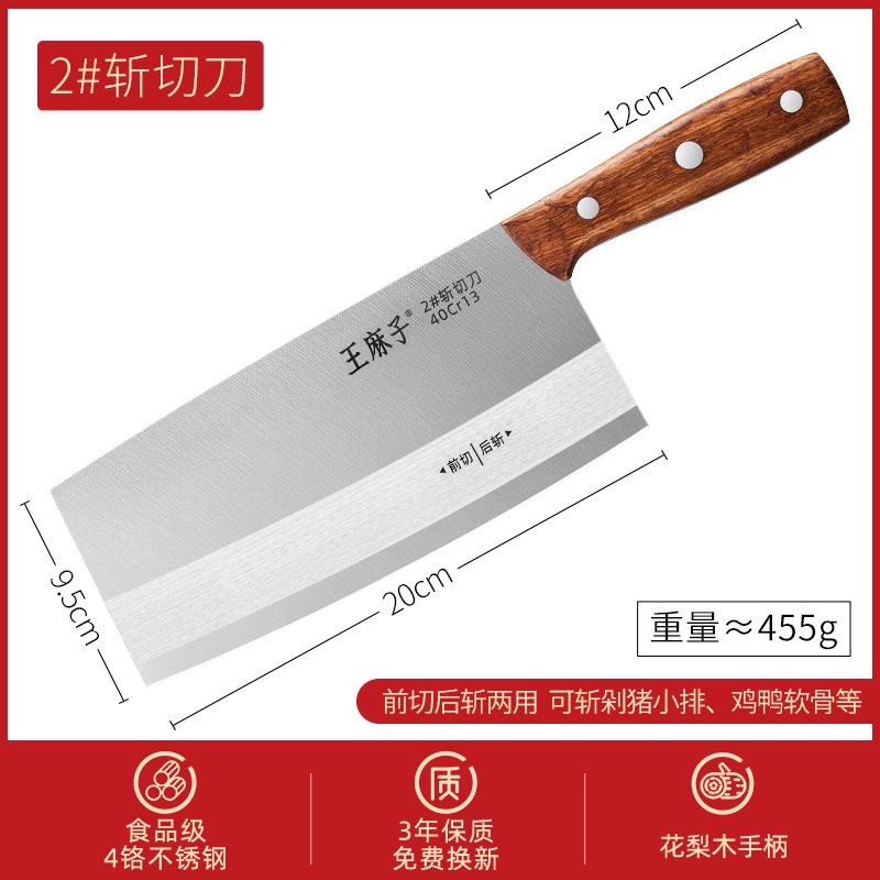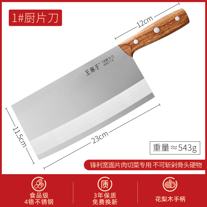 王麻子手工锻打不锈钢菜刀两用菜刀切片斩切家用锋利厨房切肉刀砍