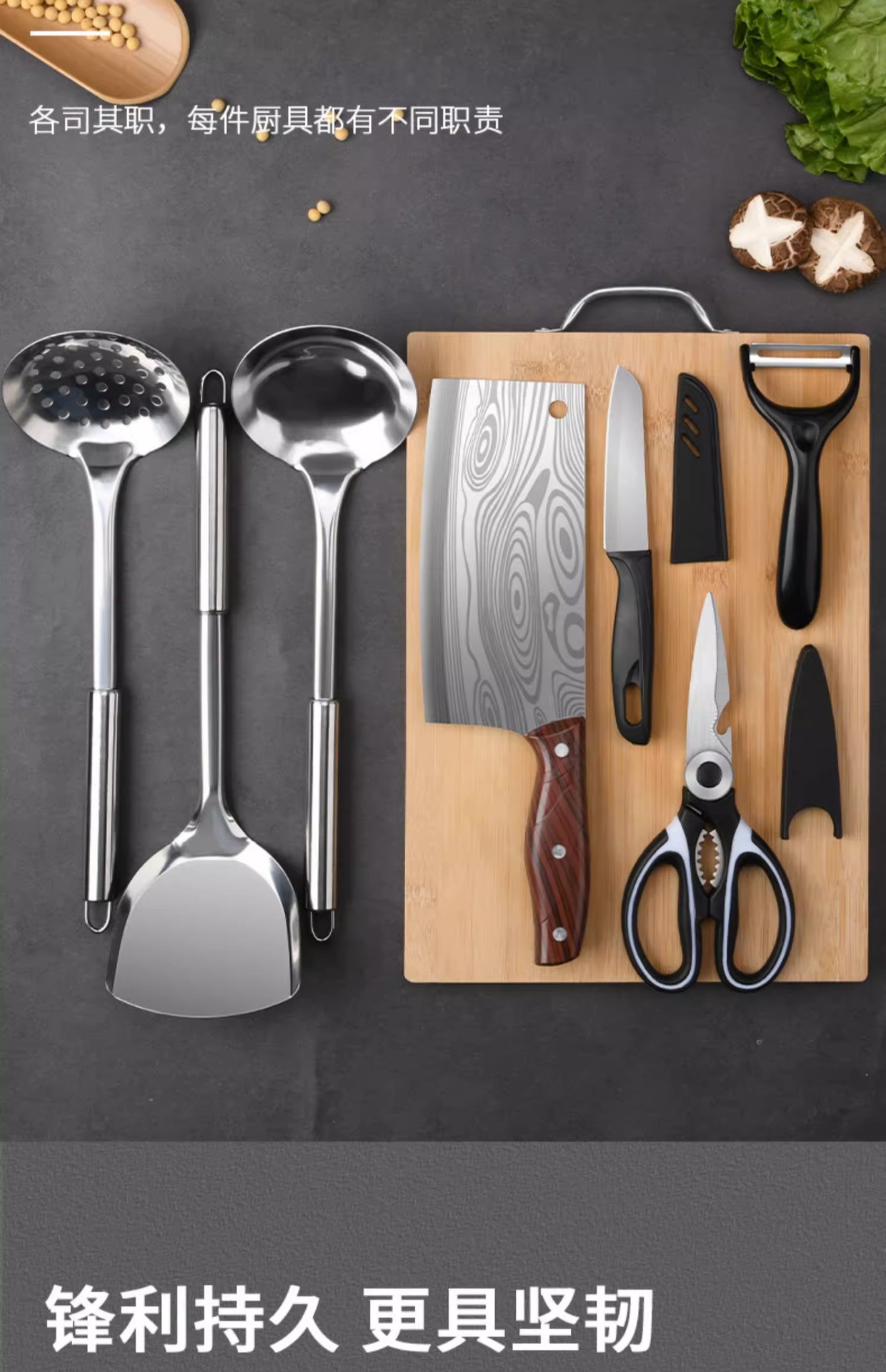 菜刀菜板二合一厨房全套厨具家用切菜切肉切片刀案板砧板刀具套装