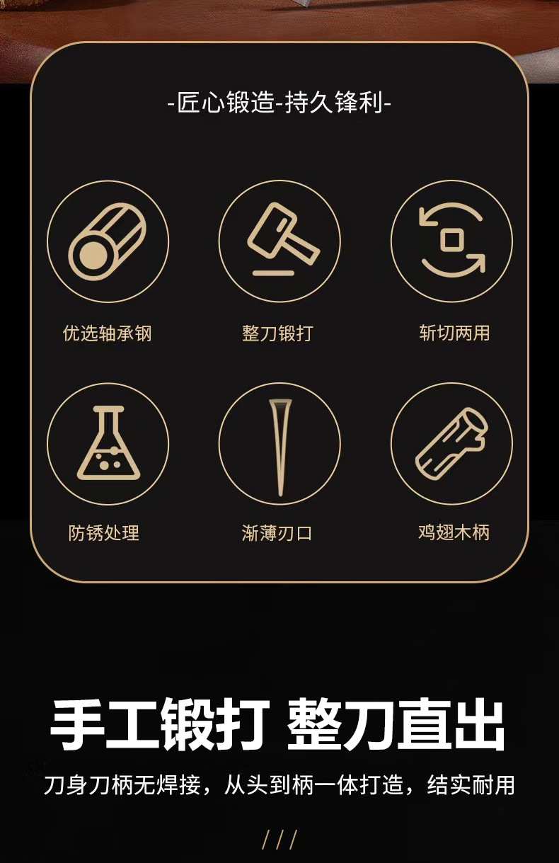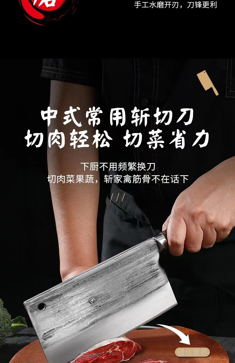 轴承钢锻打手工家用菜刀商用斩切两用锋利厨房老式厨师加厚烧腊刀