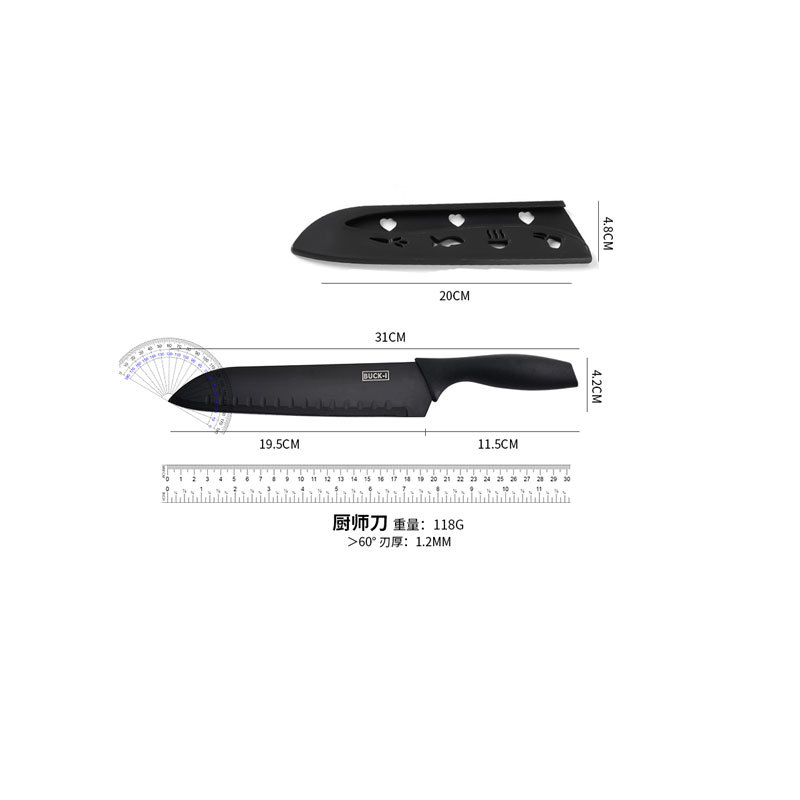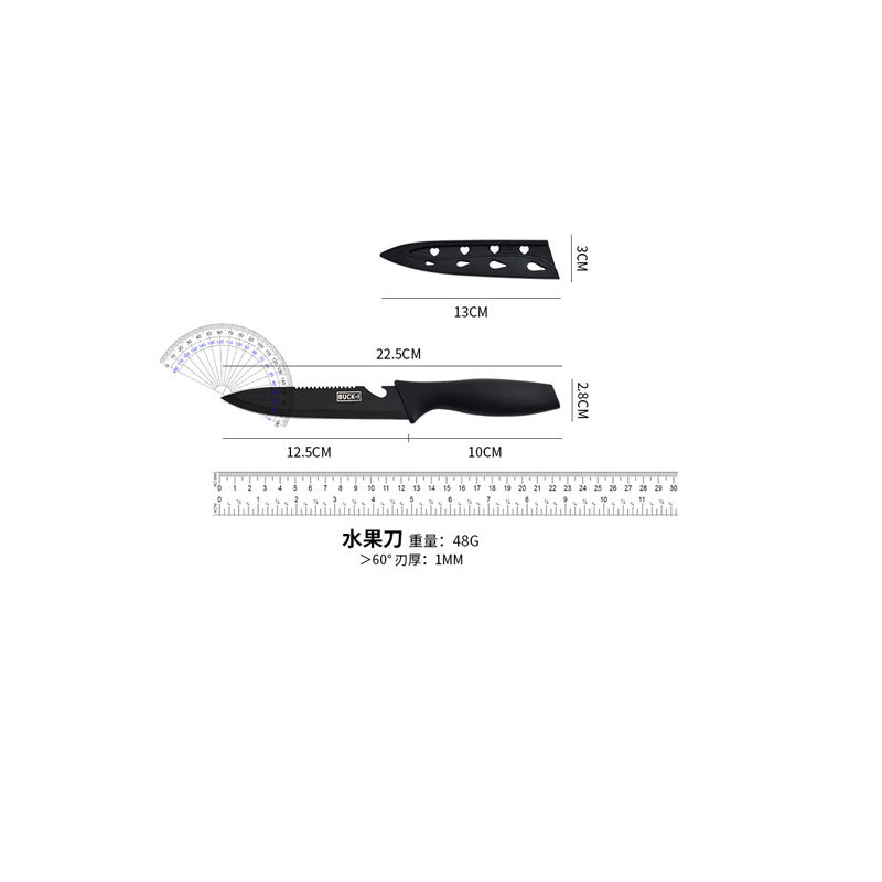 北欧不锈钢家用厨房户外黑钢刀锋利切菜刀胶套水果刀婴儿辅食刀具