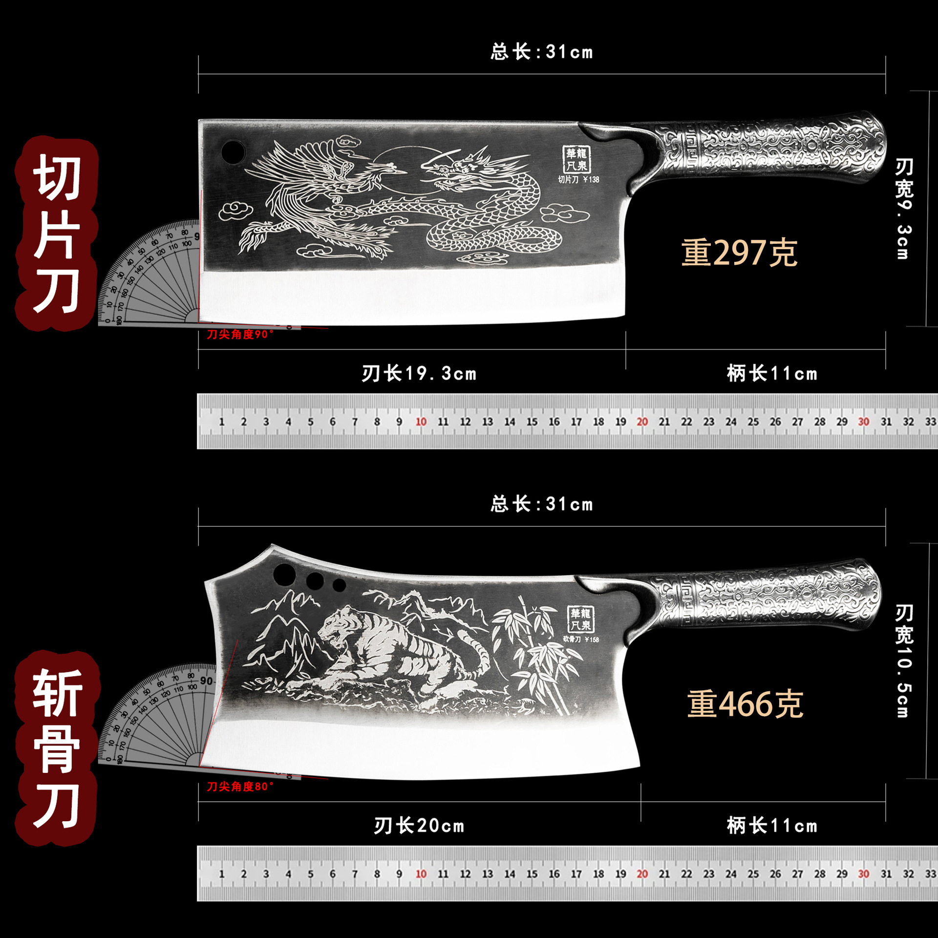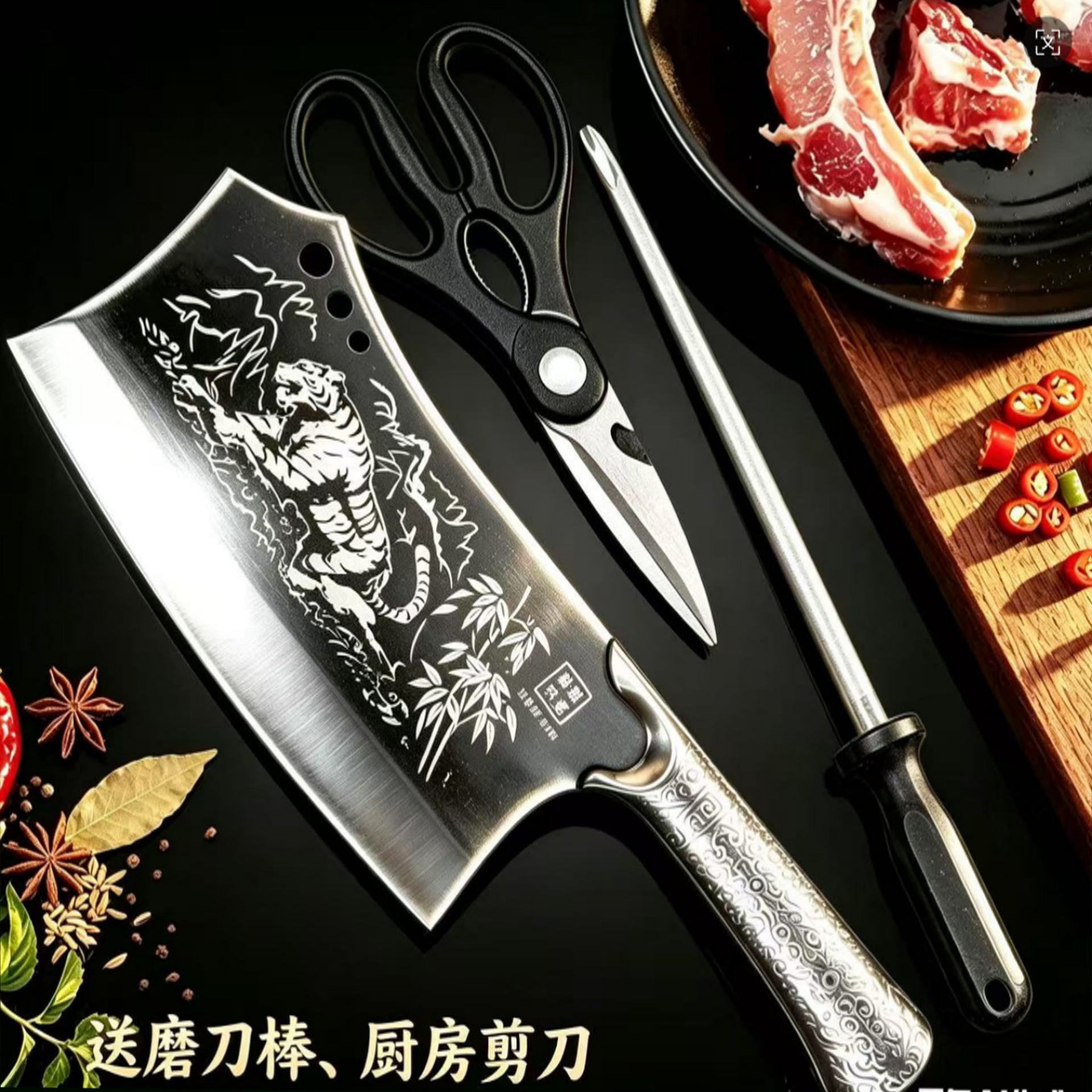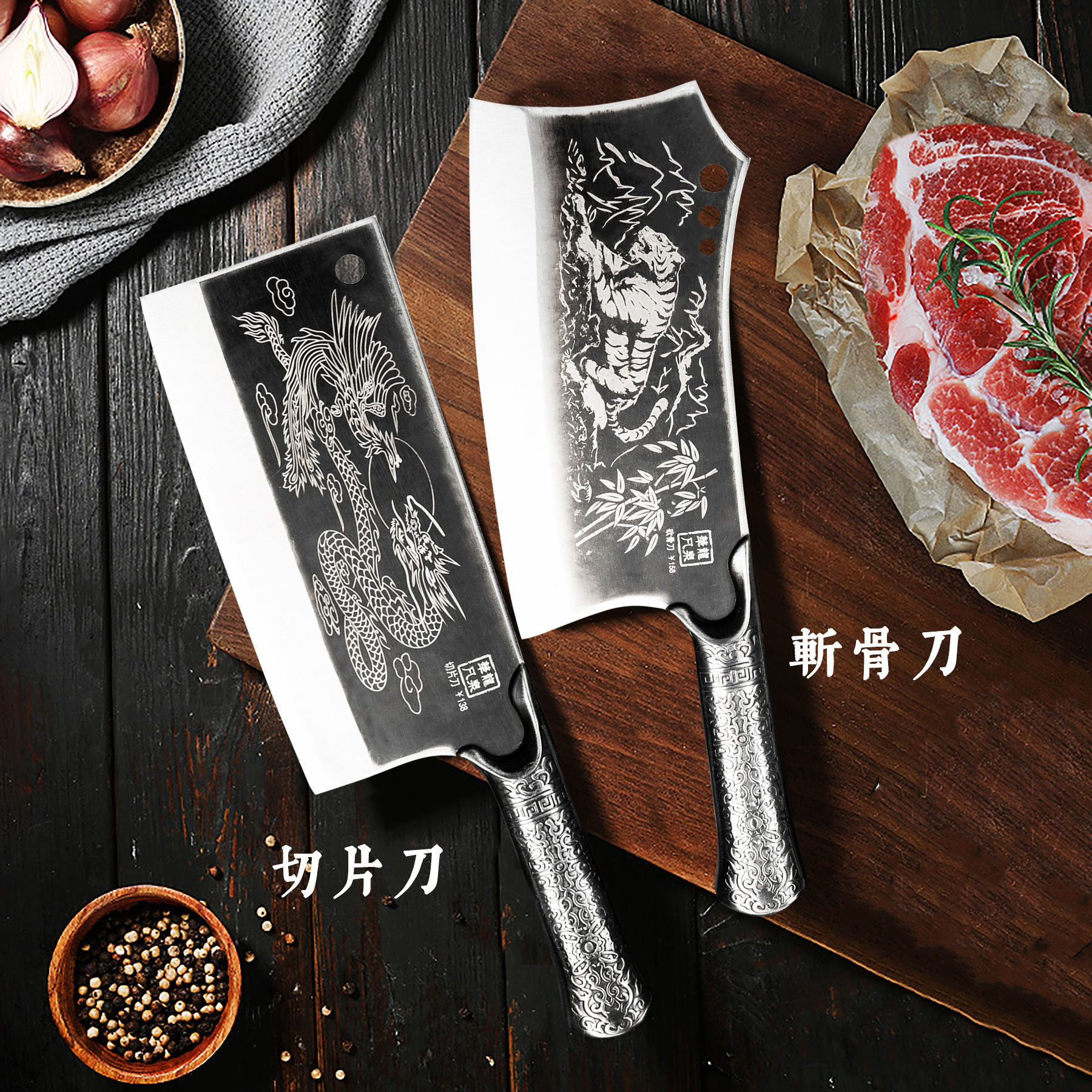 砍骨刀家用菜刀切片切肉厨房斩切两用刀跑江湖全钢斩切刀厨师菜刀