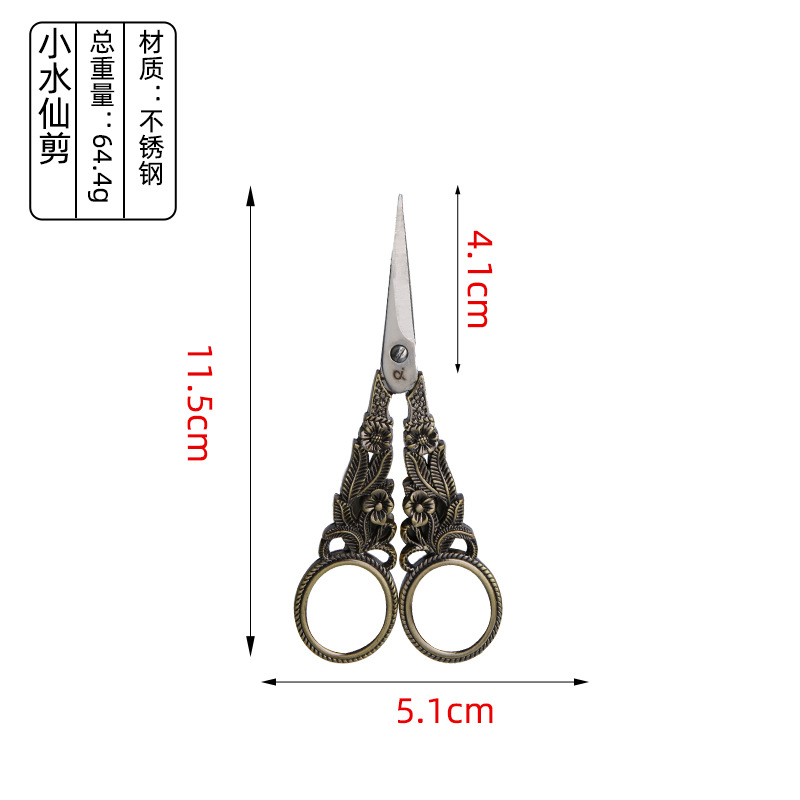 水仙藤蔓荆棘复古手工绣花剪 十字绣剪不锈钢线头剪家用便携剪刀