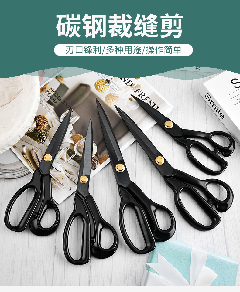 厂家现货 黑色锰钢锻打手工裁缝剪刀家用服装裁缝大剪刀 专用批发