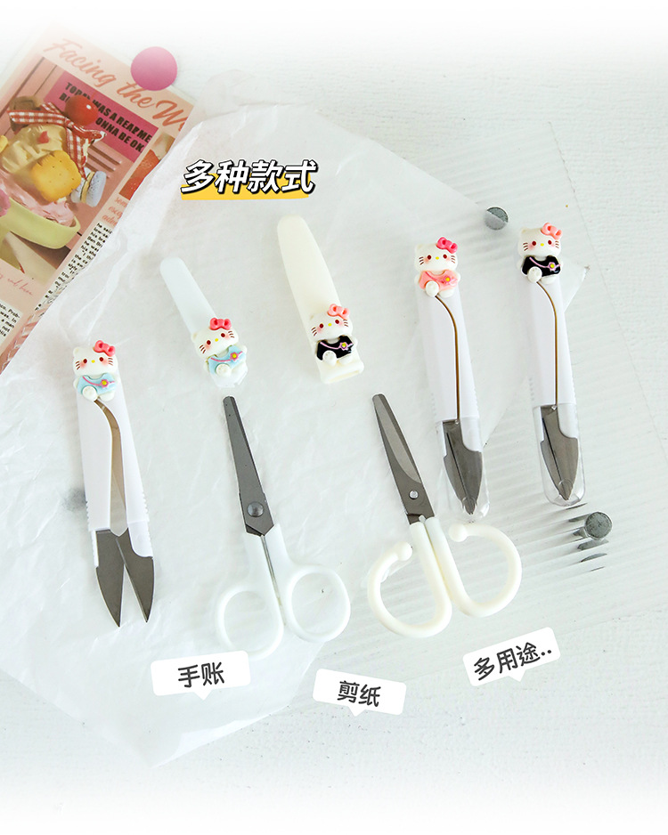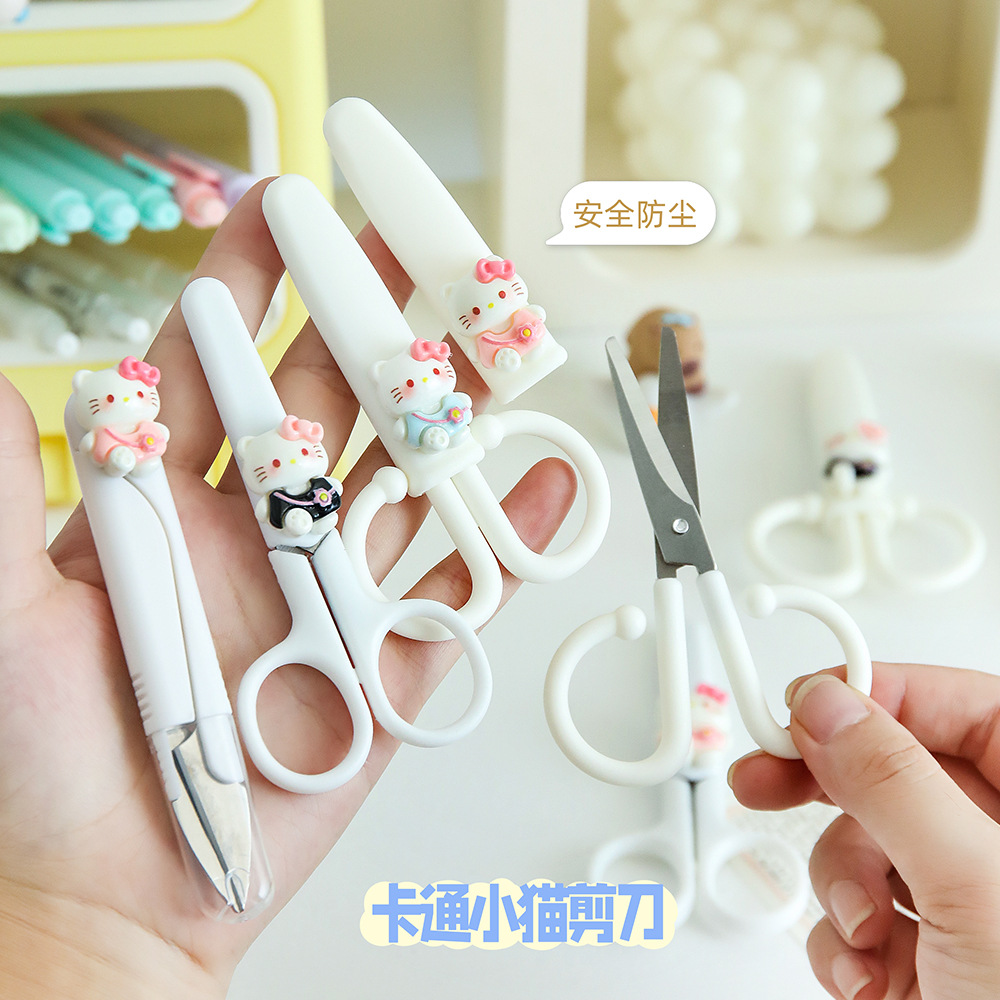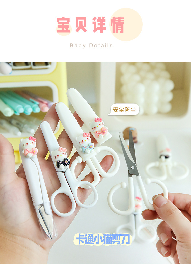 新款卡通可爱小猫便携剪刀学生手工剪纸刀家用缝纫带盖修线头剪子