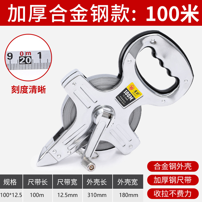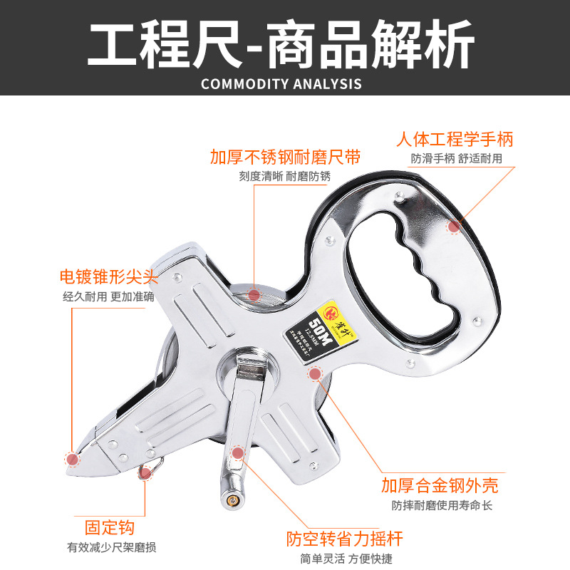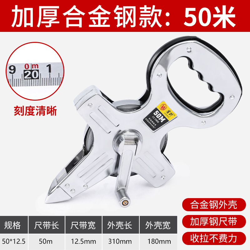 雀升50米钢卷尺 不锈钢卷尺30米手提尺100米手摇插地尺20米架子尺