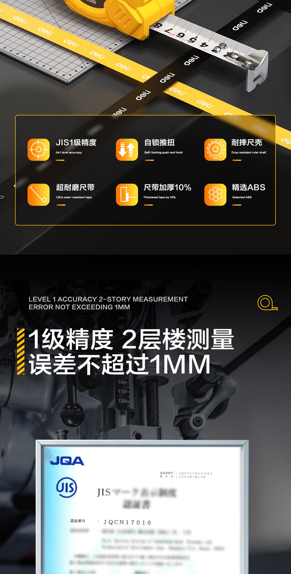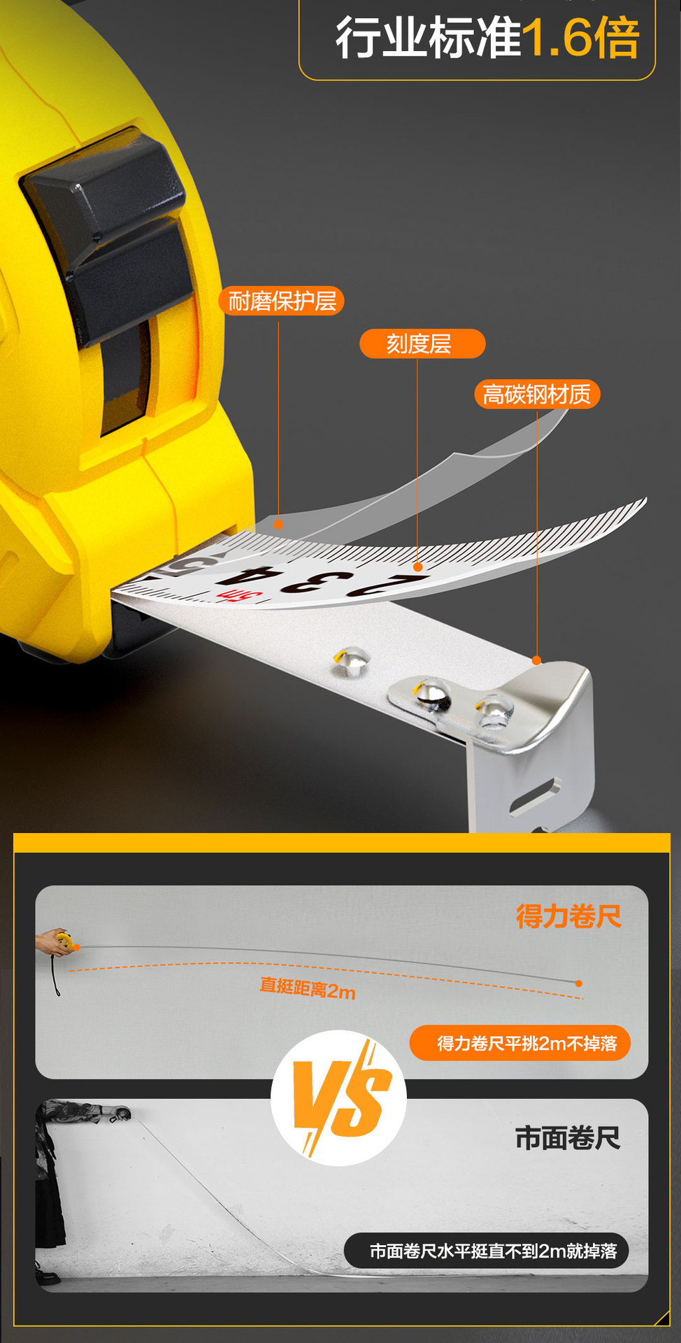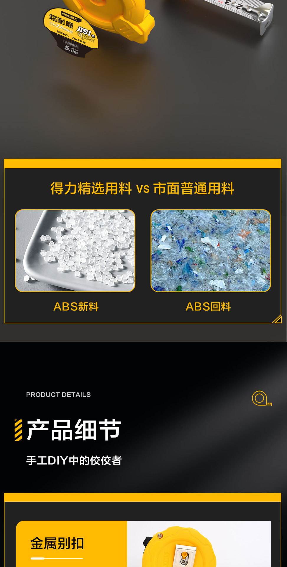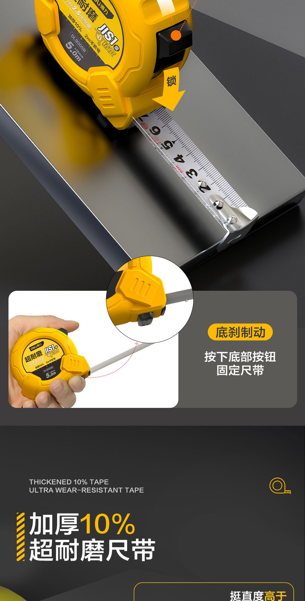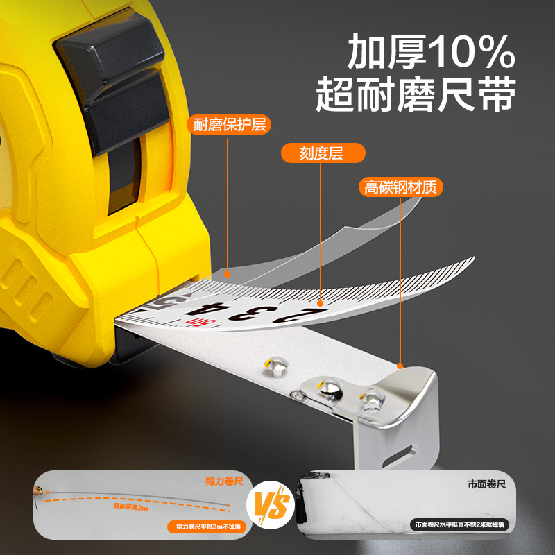 得力工具卷尺2米3米5米7.5 米10M钢卷尺木工家用加厚盒尺 DL9005B