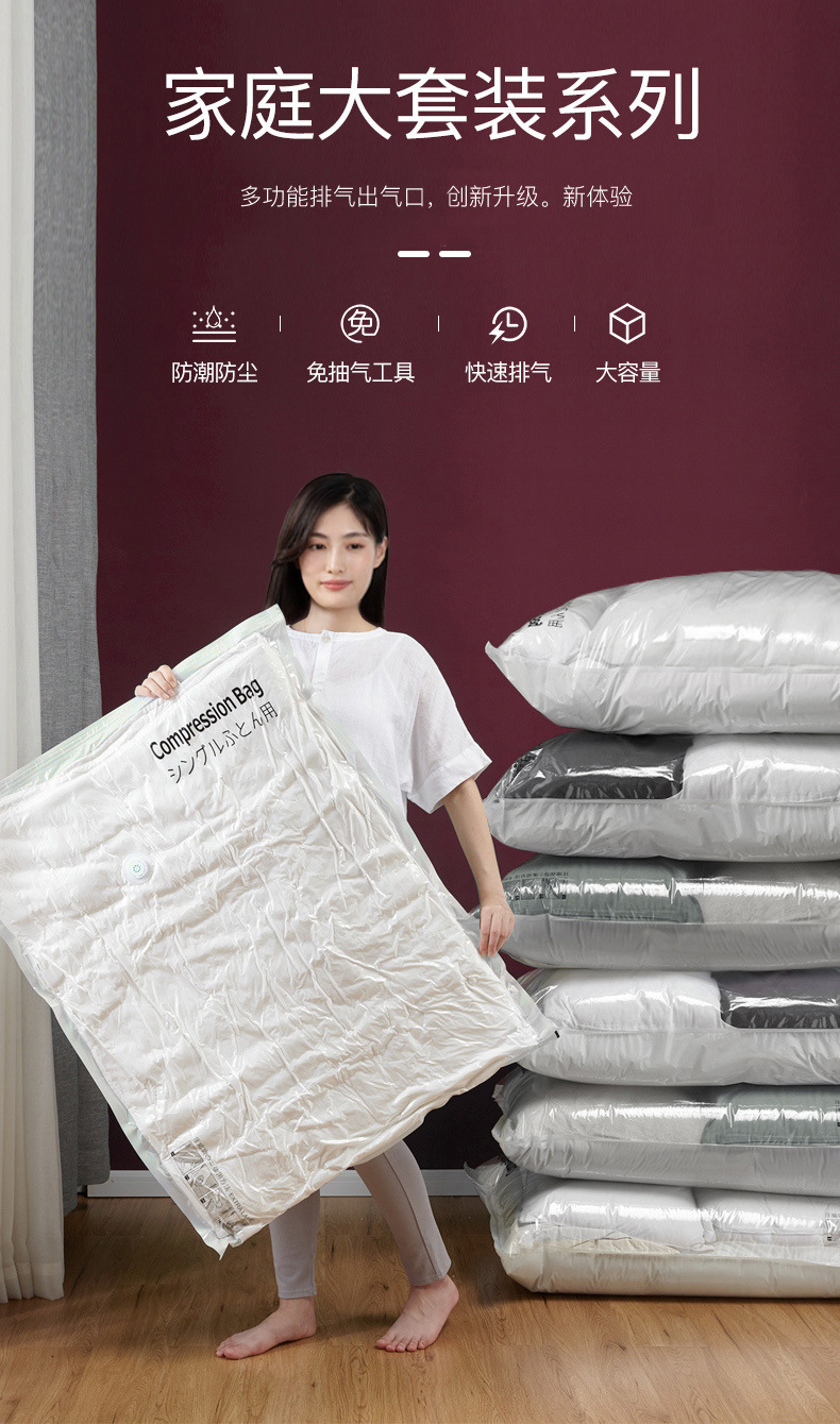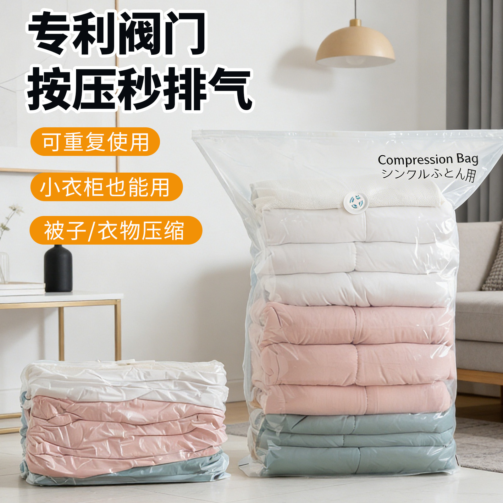 现货简约风立体真空压缩袋衣服被子打包袋特大超大免抽真空收纳袋