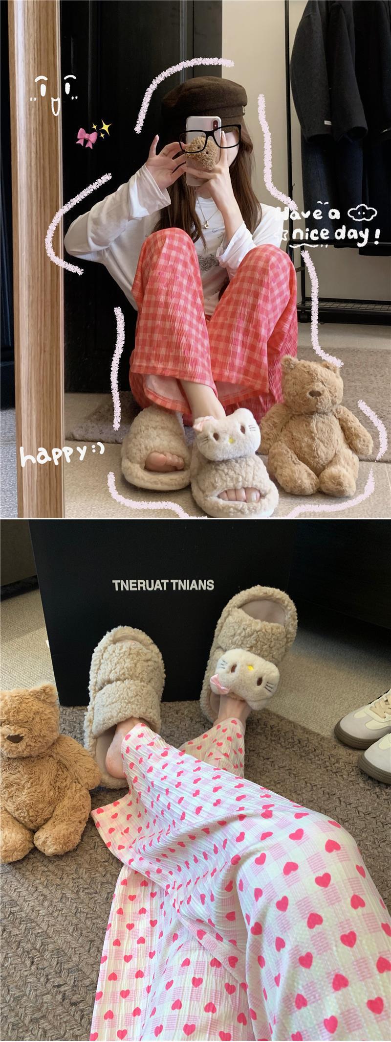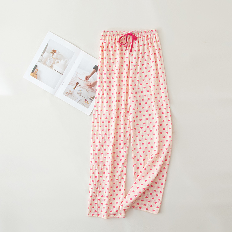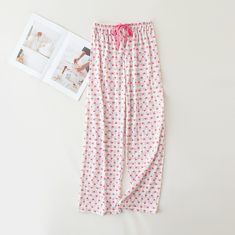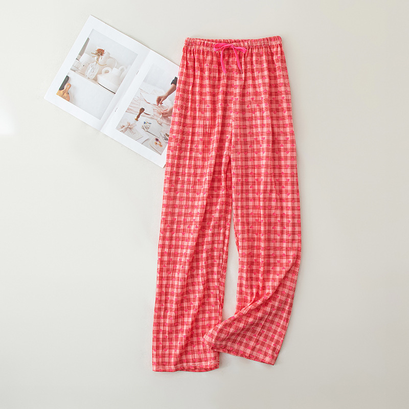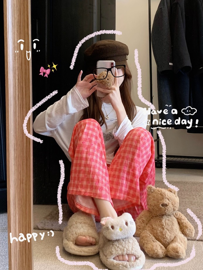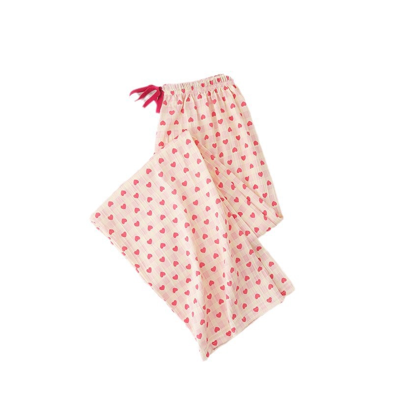 可爱印花睡裤女慵懒风高腰显瘦爱心格子阔腿裤居家外穿遛弯休闲裤