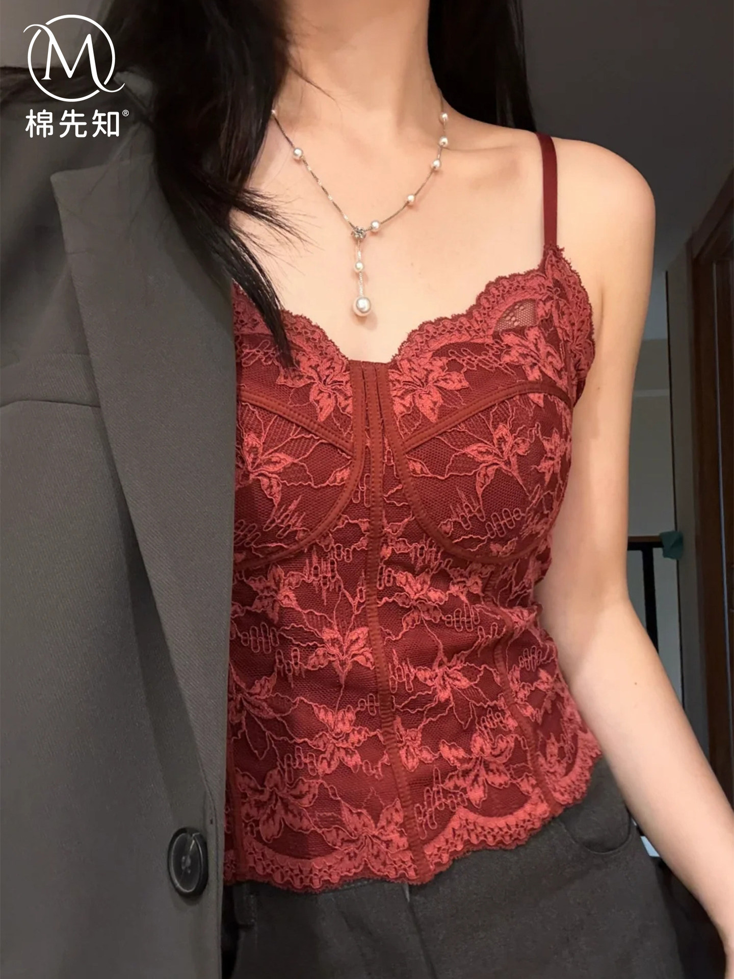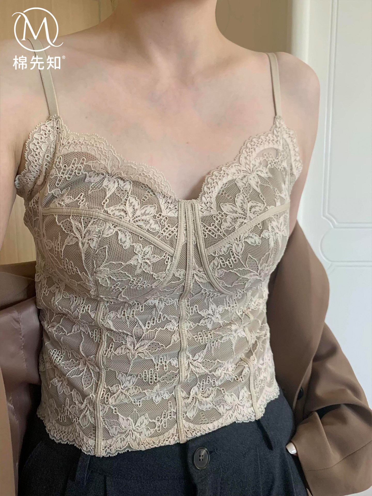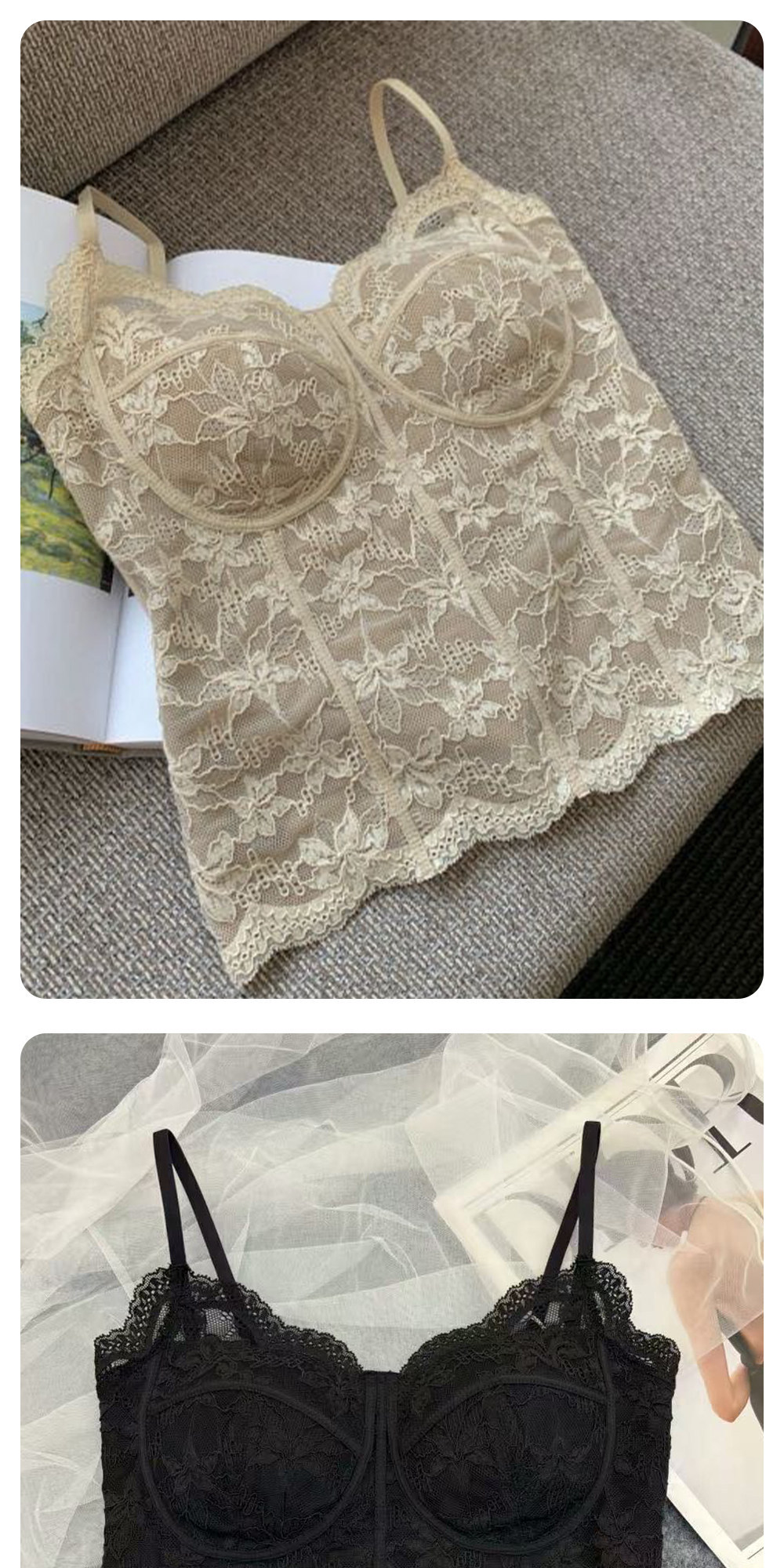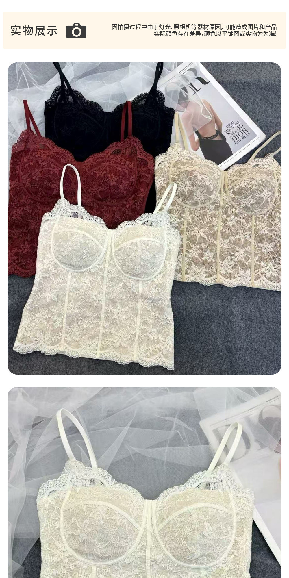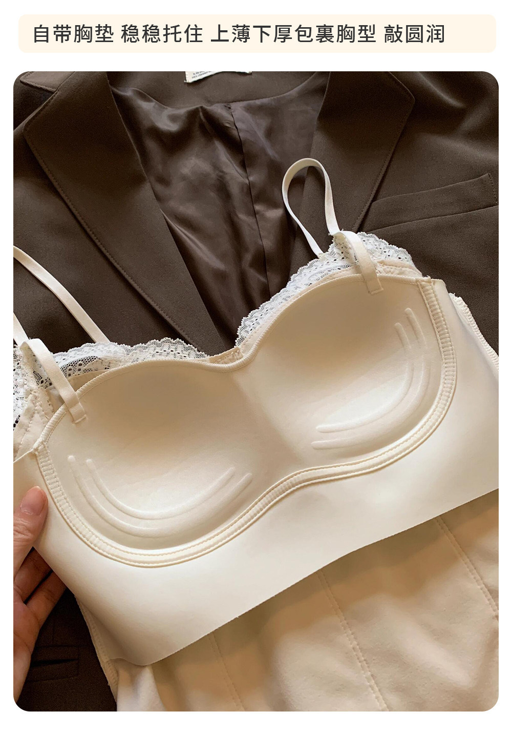 法式蕾丝吊带背心女薄款内搭外穿带胸垫修身打底舒适美背胸衣夏