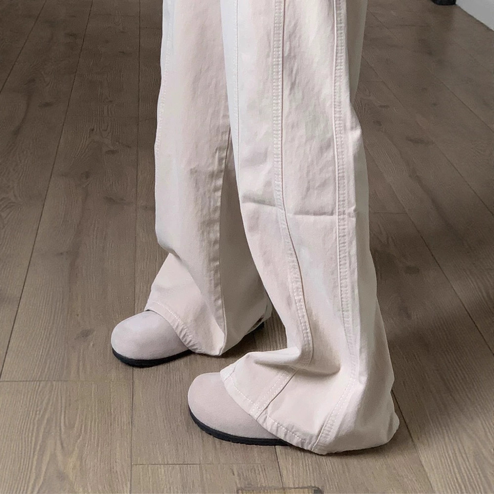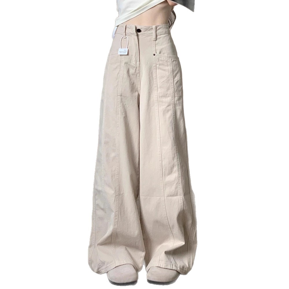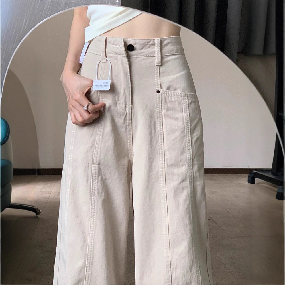 杏色阔腿牛仔裤女2026新款胖妹妹mm高腰显瘦梨型身材直筒阔腿裤