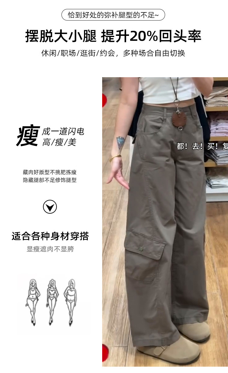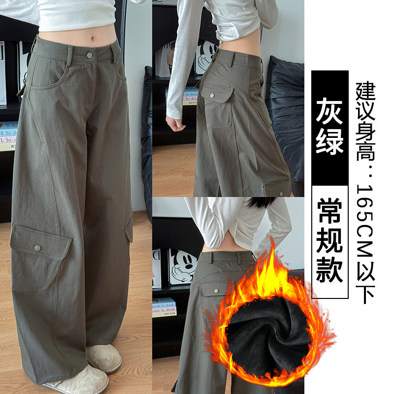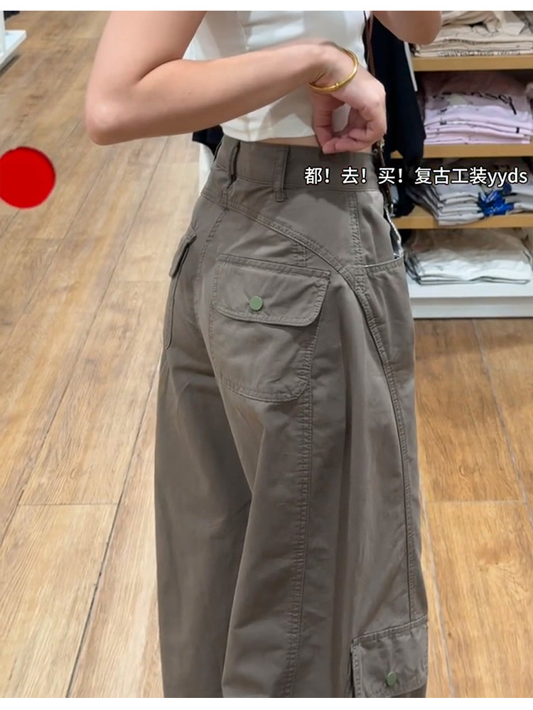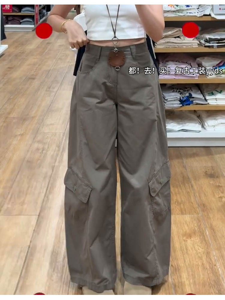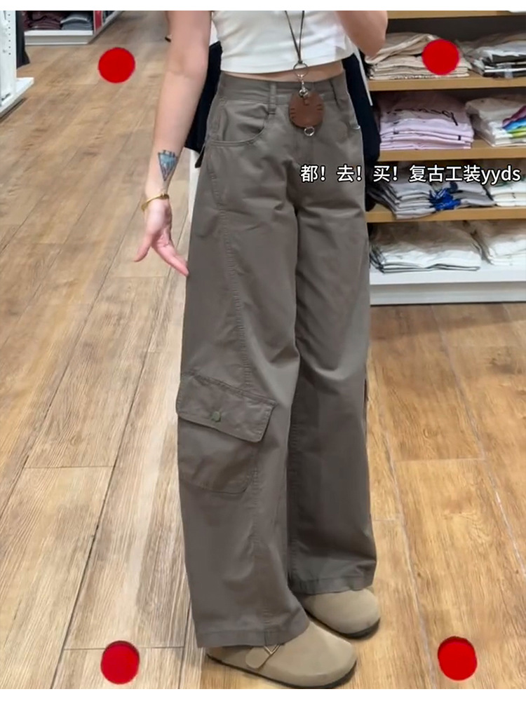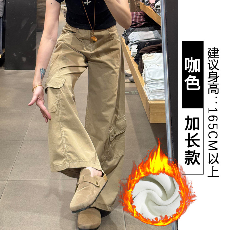 美式工装运动裤女春夏2026新款高腰显瘦辣妹弯刀裤直筒加绒阔腿裤