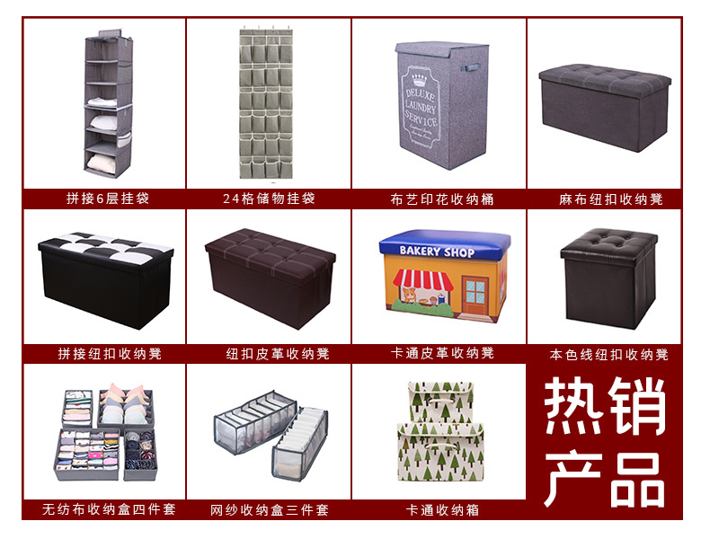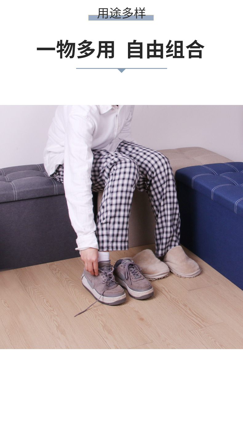 亚马逊收纳凳折叠大容量储物凳家用换鞋凳棉麻双线沙发凳正方形