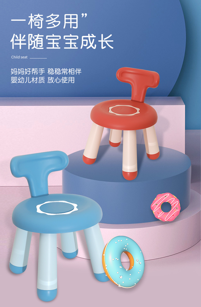 一件代发宝宝塑料小凳子卡通圆凳加厚可爱儿童甜甜圈儿童椅靠背椅